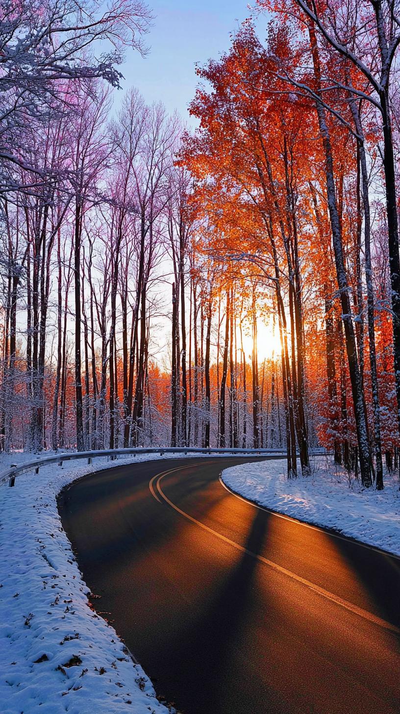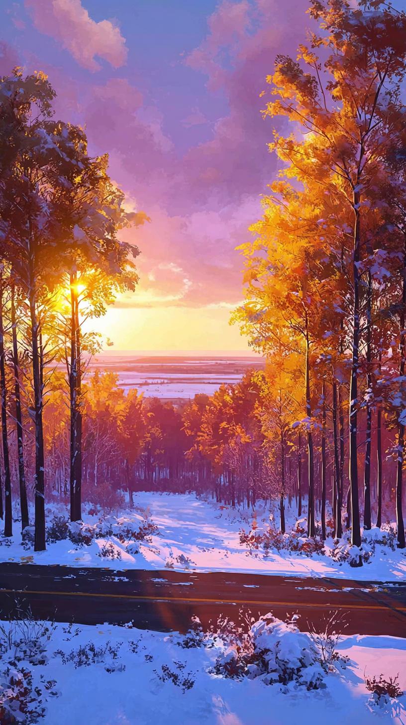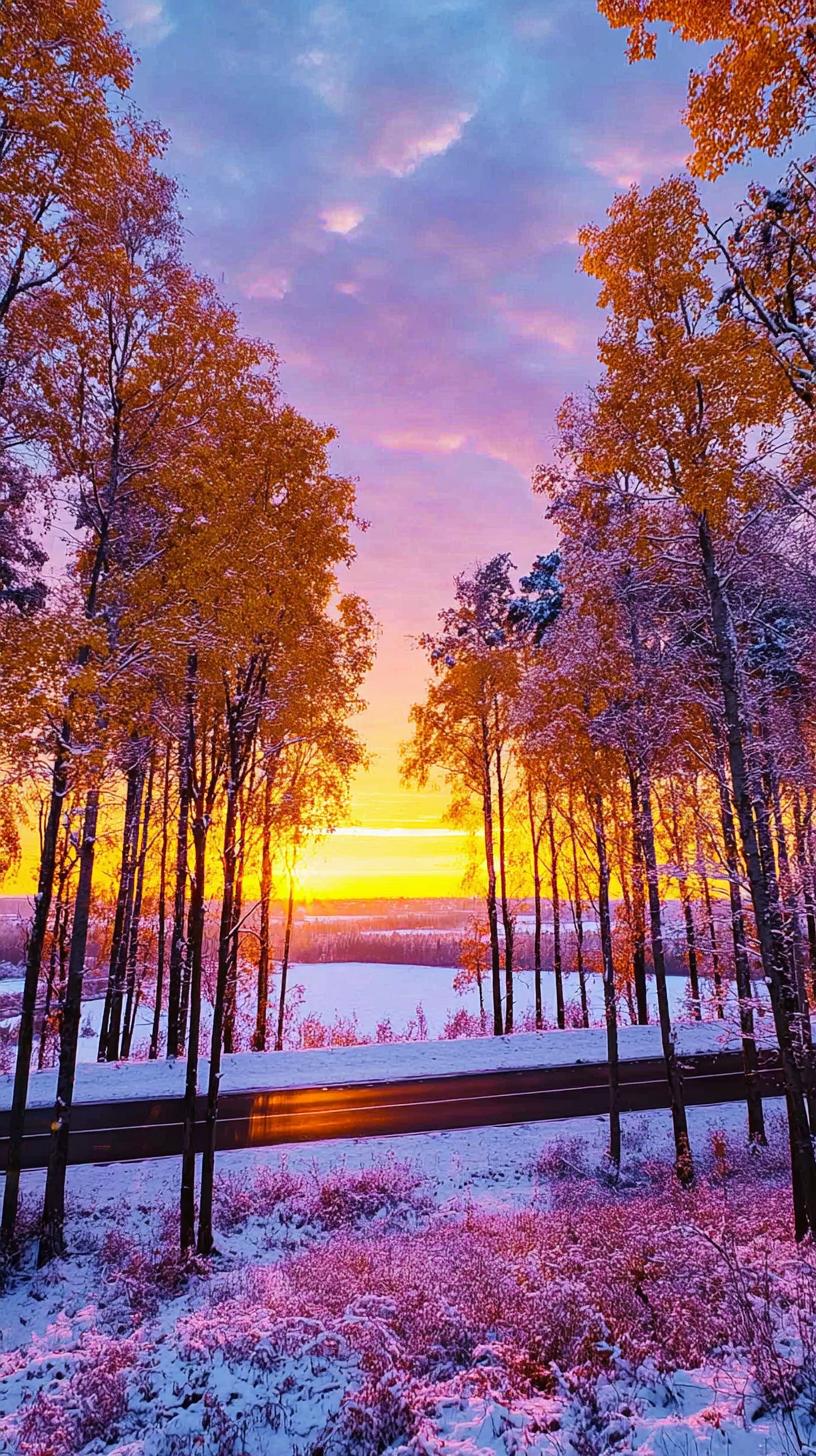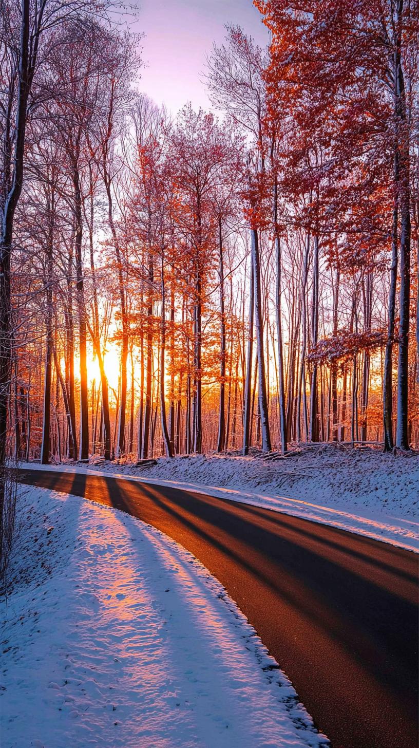冬日暖阳洒在雪地上,静谧的森林小路,仿佛通向童话世界。🌲💫
