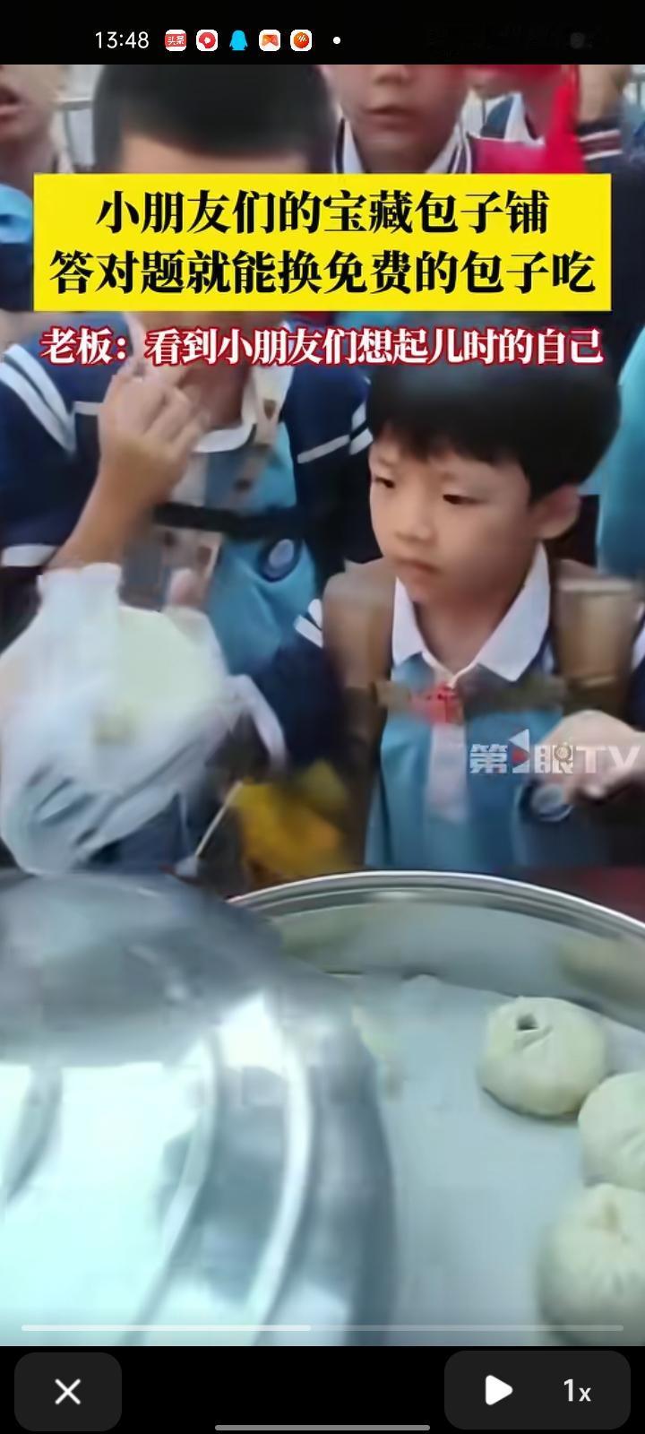 11月23日,九江瑞昌市。老板看见小朋友们买包子,想吃又没钱的眼神,想到自己小时候看见别人卖东西想吃的感受,灵机一动就想出了办法,就是给小朋友们出题,答对题就能免费换包子吃。