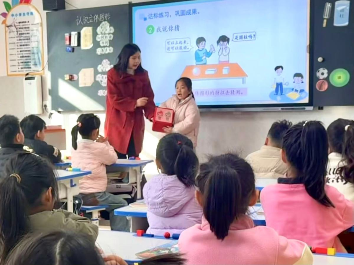 路凯利老师执教的数学课《认识立体图形》,以“参观路老师新家”的趣味情境开启课堂,引导学生观察家中不同形状的物品并分类整理,逐步建立起对立体图形的直观认识。学生通过“数、摸、滚”等探究活动,深入理解立体图形的特征,并学会根据特征辨识变式图形。