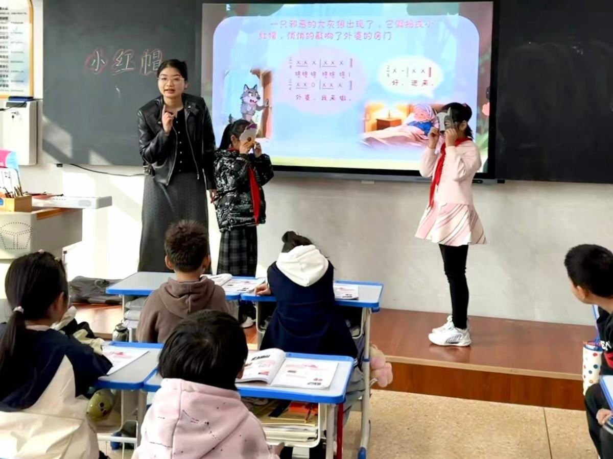 王杞老师执教的音乐课《小红帽》,以“情境表演体验”为主,组织学生分组进行情景表演,分别扮演故事中不同的角色,在沉浸式演绎中体会“轻易给陌生人开门”的潜在危险。最后通过演唱、表演、点评与讨论,在学习歌曲的同时让学生树立自我保护意识。