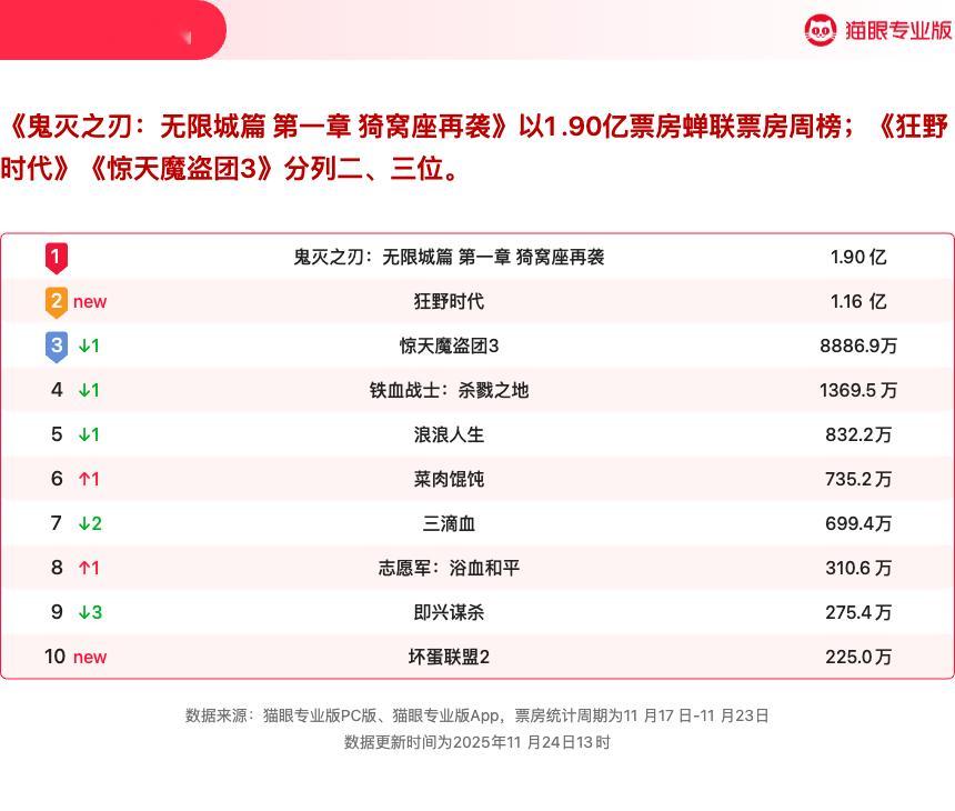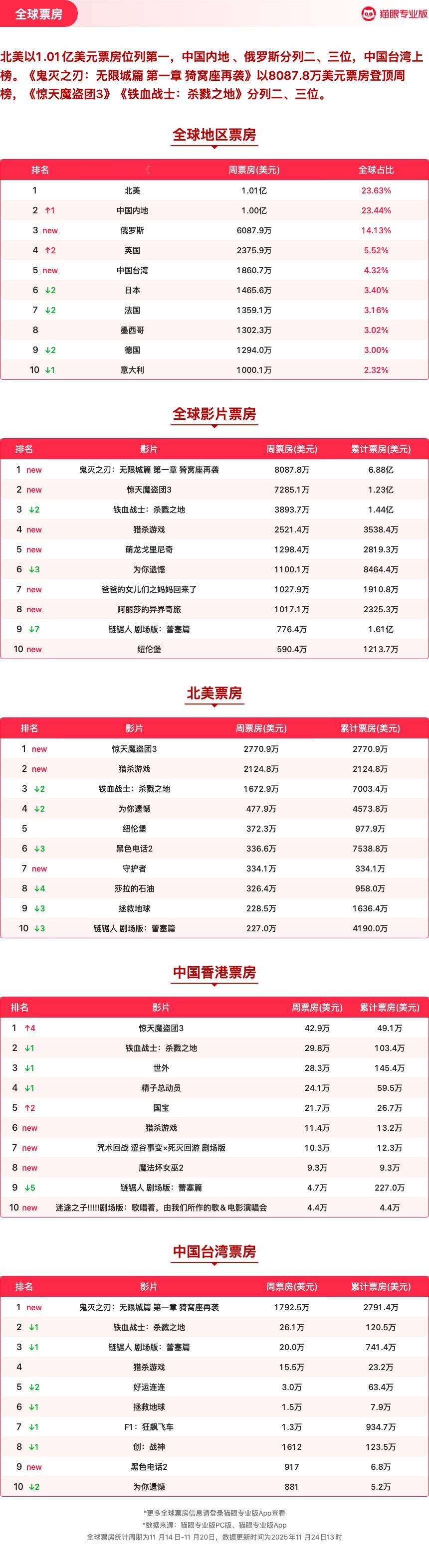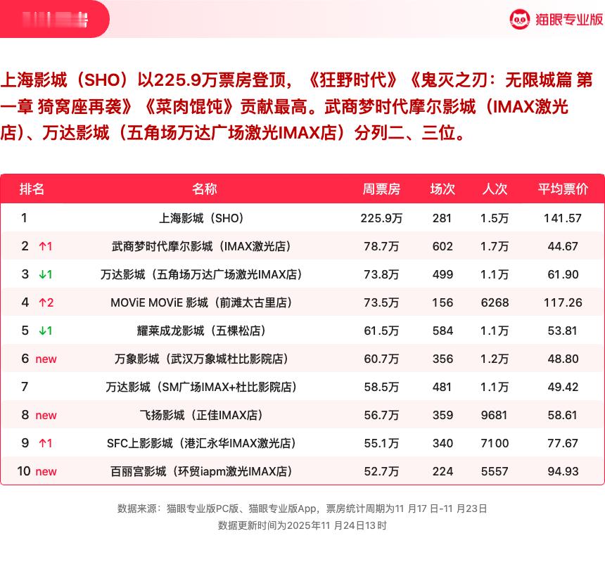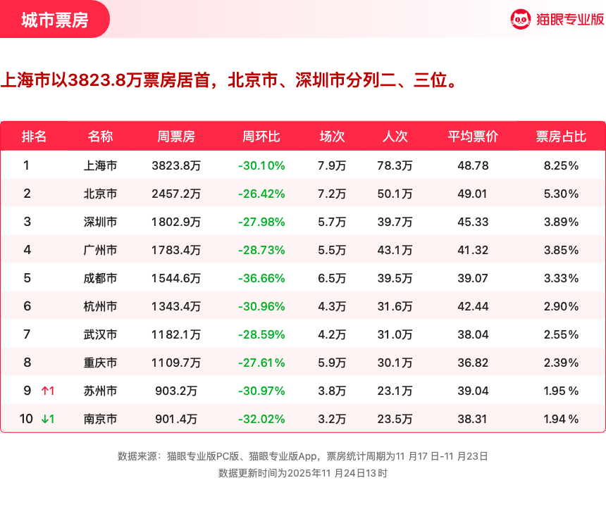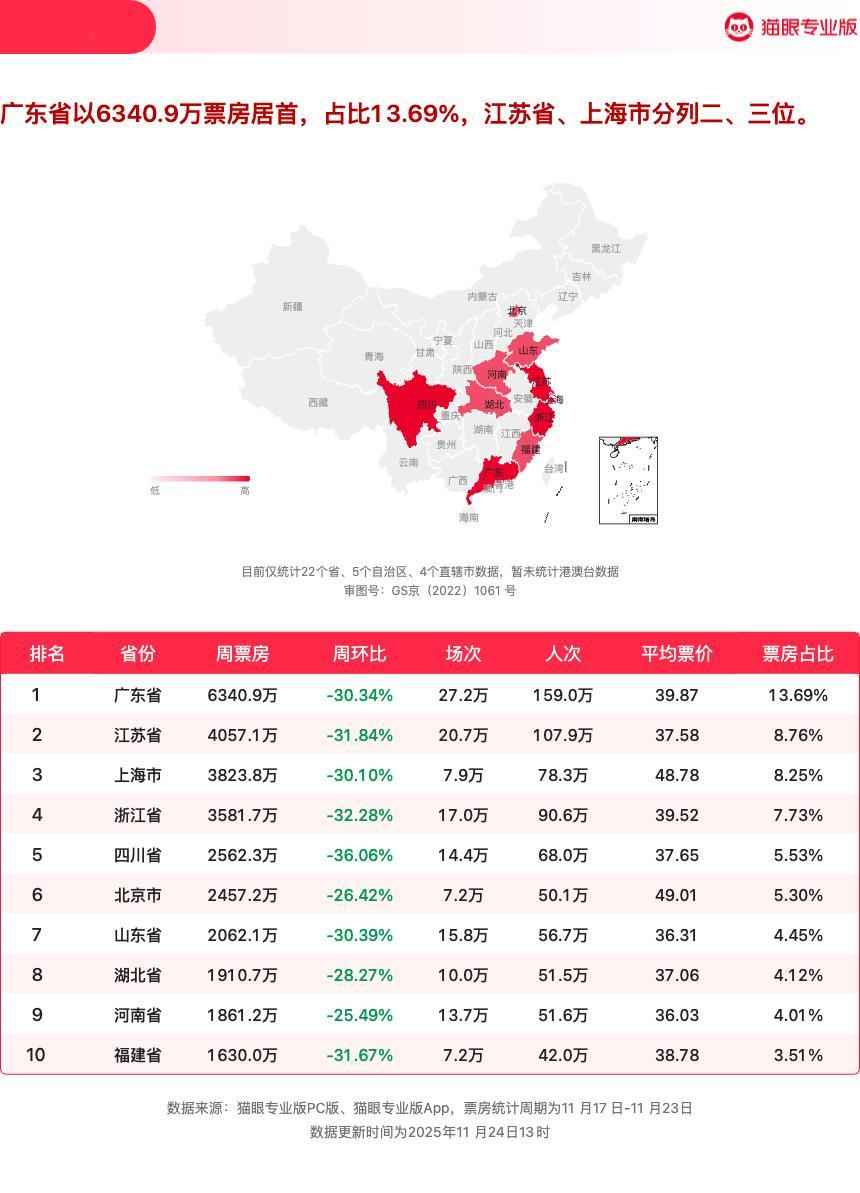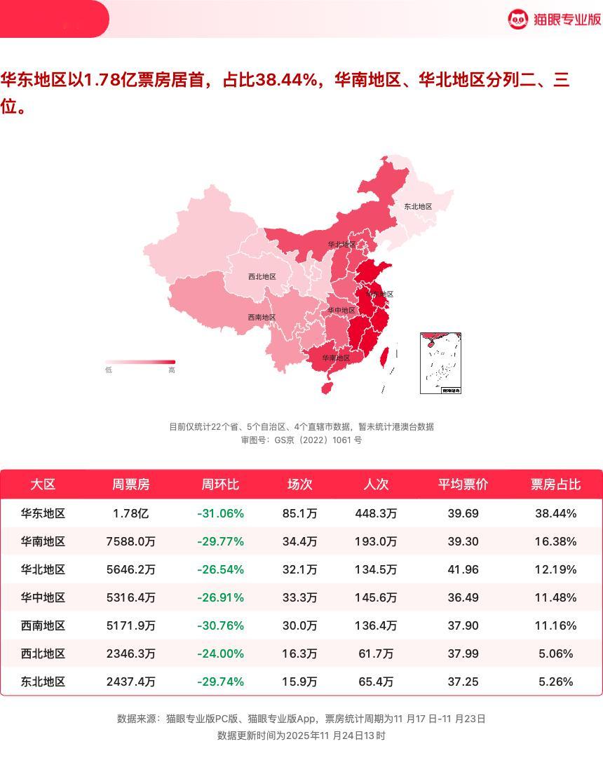 猫眼专业版第46周电影周报发布📒:周票房4.63亿,场次247.4万,人次11