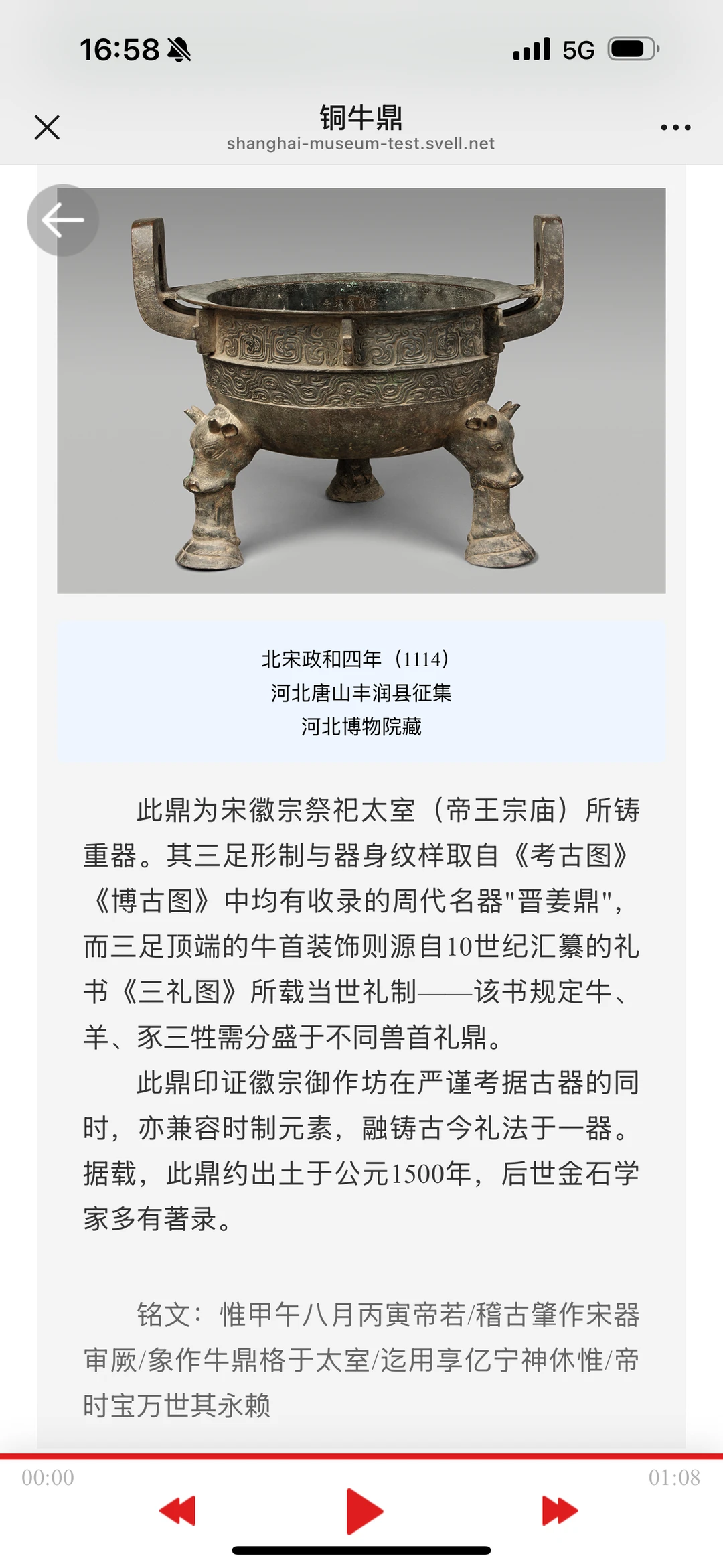 • 铸造时间:铸于北宋政和四年(1114年)。
