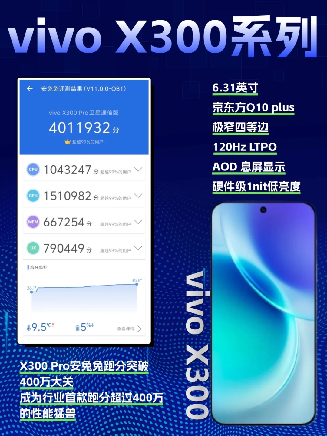 2⃣️ 安兔兔跑分突破400万大关!X300 Pro成为行业首款跑分超过400万的性能猛兽!😎 这冷劲强悍的实力还有谁?