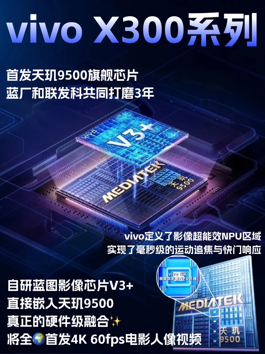 3⃣️ 自研蓝图影像芯片V3+直接嵌入天玑9500!这可是vivo独一份的硬件级融合,其他厂商的天玑9500都没有哦~