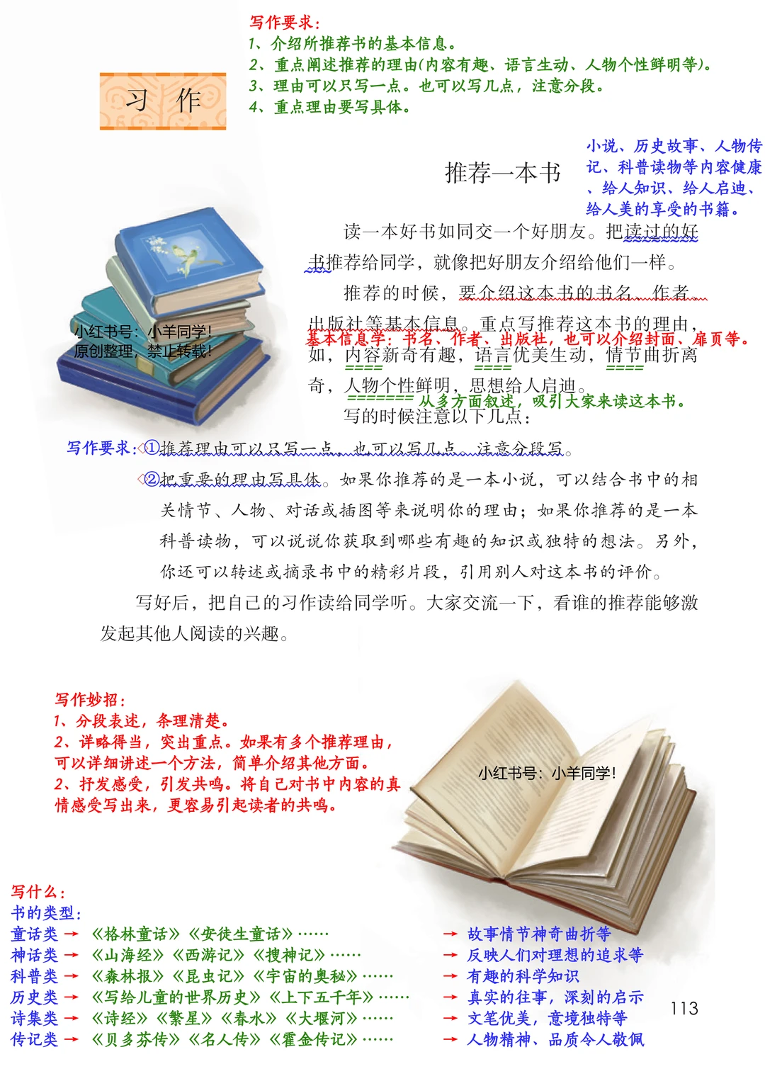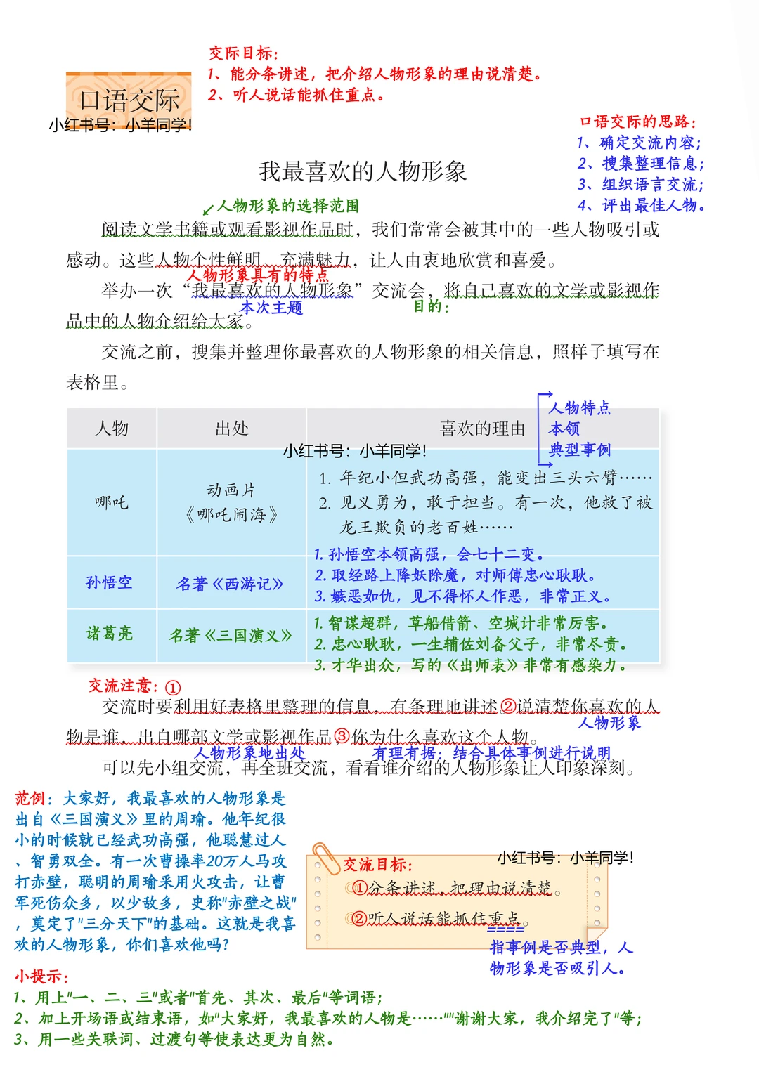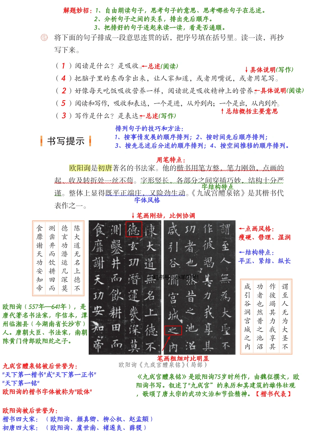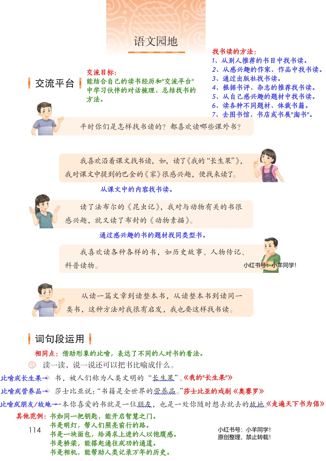 学习目标: ▪️口语交际《我最喜欢的人物形象》 ▪️习作《推荐一本书》 ▪️交流平台:总结找书读的方法 ▪️词句段运用:借助形象地比喻,表达不同的人对书的看法。句子排序。 ▪️书写提示:了解欧阳询以及书法特点等。 ▪️日积月累:《观书有感》(其一)(其二) 五上2025版笔记已经全部更新完毕啦~~ 完整版在左下角店铺获取。