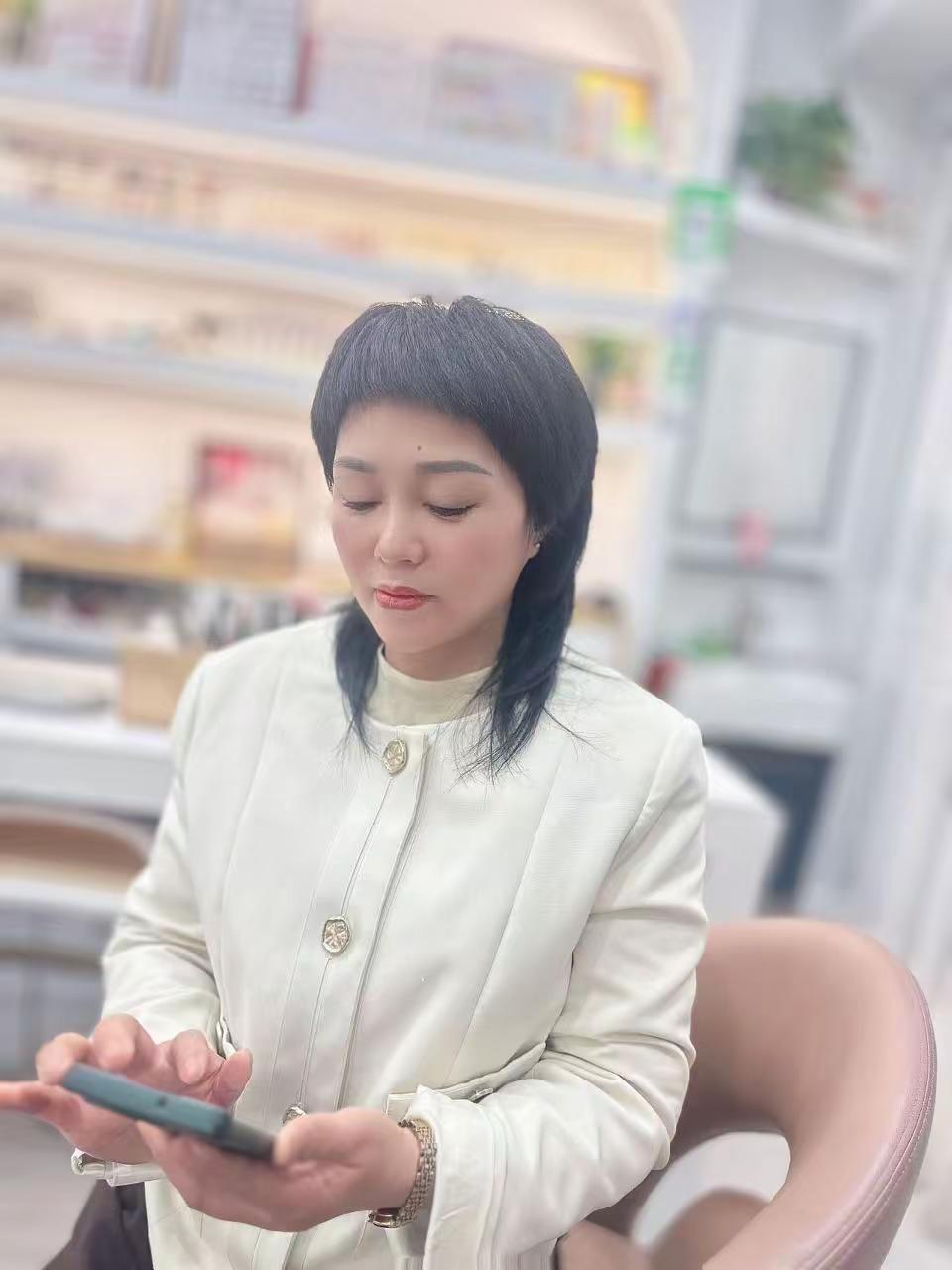 白西装干练利落,钻饰耳坠闪耀精致,长发在蓝天绿野的映衬下更显风情。她是职场中绽放