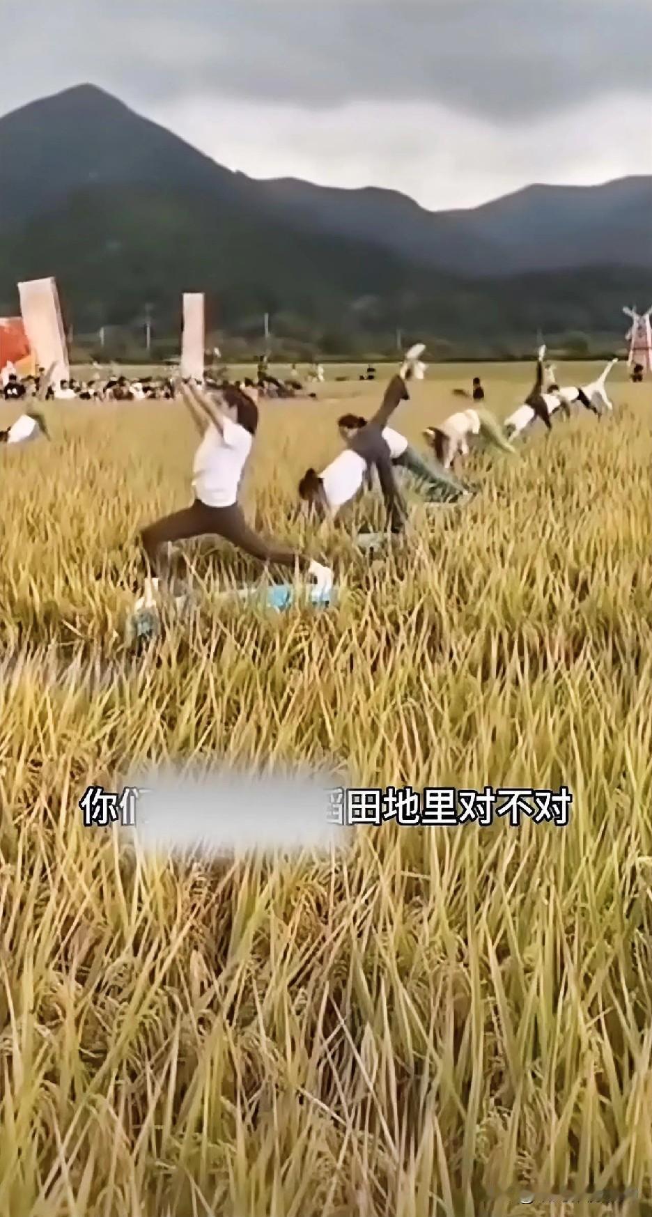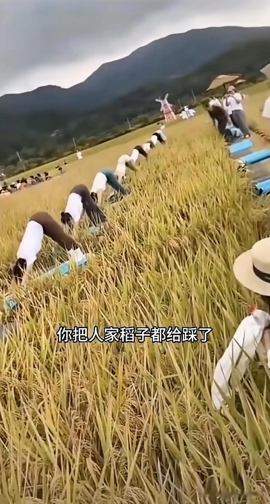 惊呆!竟然有人把稻田当瑜伽场地,你敢信? 今天刷到了一则视频,一群女的以亲近大自然为由,跑到乡下农民稻田里边去练习瑜伽。致使稻谷损毁严重!旁边路过的人提醒他们要尊重农民的劳动成果,爱惜粮食。结果她们不以为然,说道:“不就是踩了一片稻谷吗,又没什么影响。”作为一个吃饭长大的成年人,能说出这句话,周围的人实在听不下去了,纷纷指责这些练瑜伽的女人! 评论区的网友:“这是糟蹋粮食,是犯罪,公安机关要追究组织者,参与者的法律责任。” 对此你怎么看,稻田练瑜伽该不该允许?评论区聊聊你的看法~