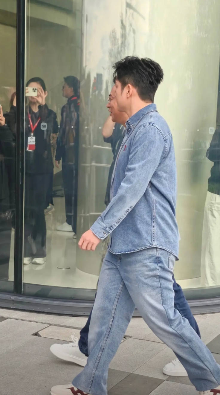 樊振东来了!樊振东来到小米大厦了。今天樊振东这个牛仔衬衫外套加牛仔裤系列太帅气了!时尚感满满! 今天这个露额头发型,也是星姐们的最爱。 这宽肩窄腰,这身材,太有型了! 从这个日常装扮来看,确实瘦了很多,这个角度看着高高瘦瘦的,太好了。 现场气氛非常热烈。持续跟进中。