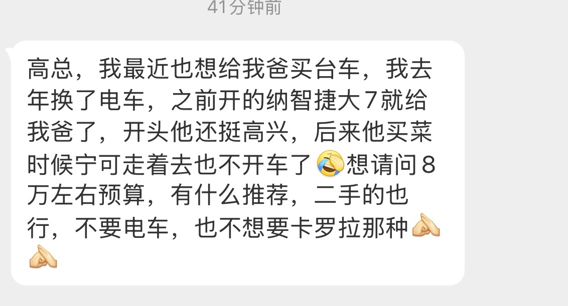 看样老爷子被大7伤的挺深8万左右适合老人开的车,你们来推荐我会让他注意收看评论区