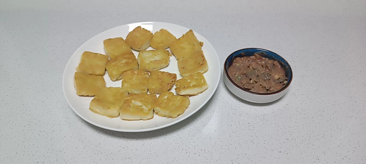 我今晚就想吃臭豆腐,自己做起来!火速买来一块新鲜的大豆腐,切成小方块(刀功不太好[笑哭]),裹上湿淀粉,中火煎至金黄摆盘。然后用青方,大蒜,香菜末,香油调制臭酱,调完尝一下,太臭,我又加了点红方。改良后味道不错,蘸起来吃一口,不错,和烧烤摊上卖的差不多。我这做法纯是自创的,谁做过标准的臭豆腐,分享一下,我学学。臭豆腐 手工土臭豆腐