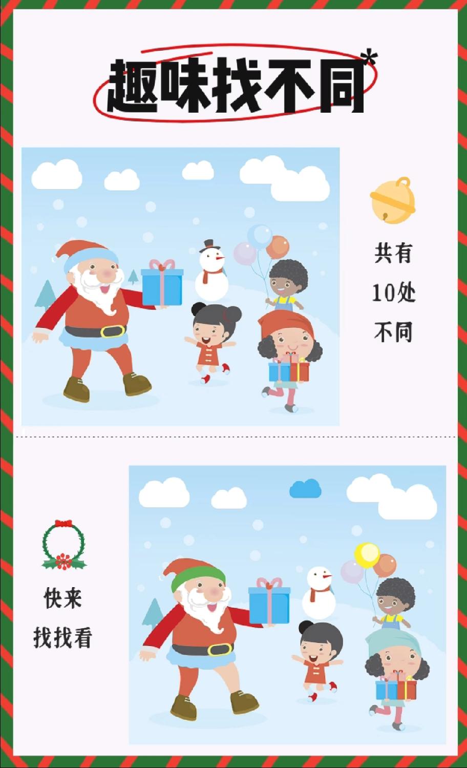 这图太费眼!圣诞元素里藏了10处不同,我妈说她5秒找出4处,结果被打脸了…你找到