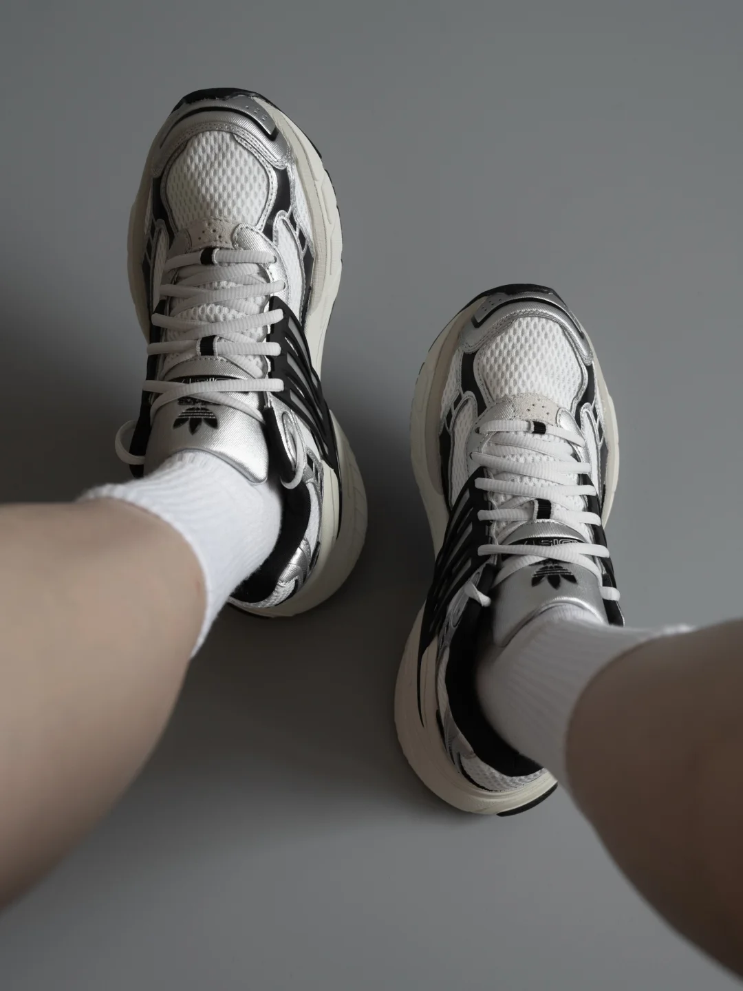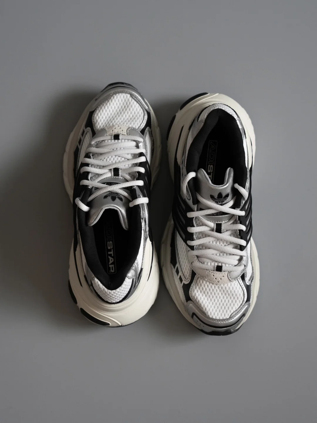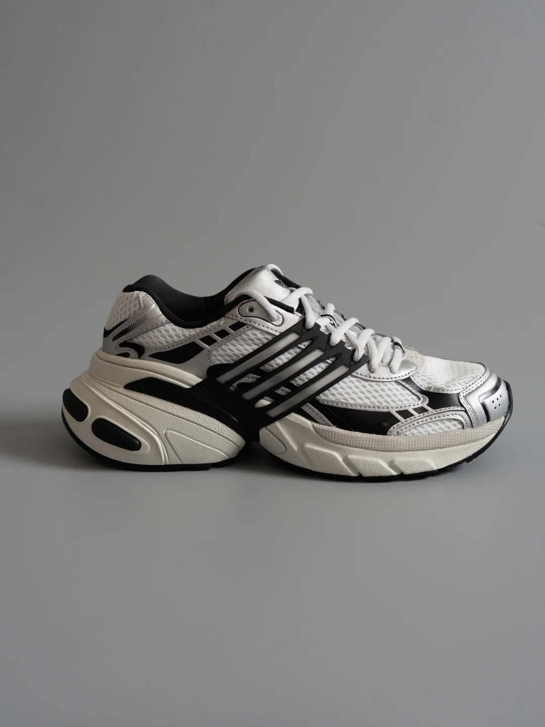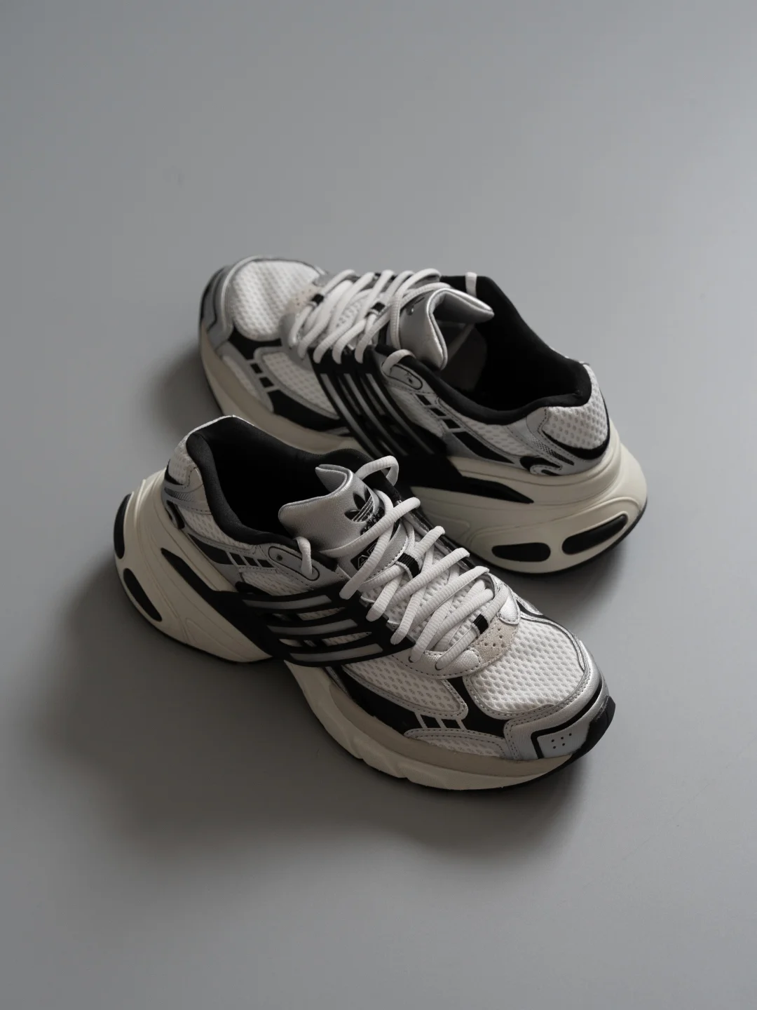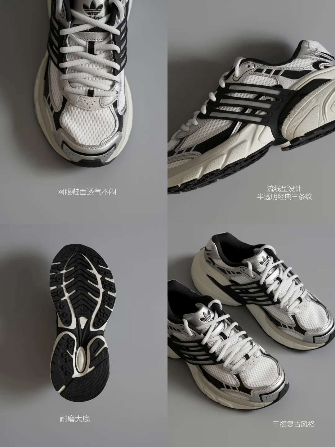 它的厚底设计深得我心。 中底不仅提供了舒适的脚感,更带来了非常流畅的线条感。增高之余,完全没有“笨重感”,这点很难得。 鞋面的材质拼接做得很有心思,皮革、绒面革和压凹细节,让整体看起来富有层次却不杂乱。 最点睛的是那条贯穿的半透明TPU三条纹,给复古的鞋型注入了一丝未来感。 无论是搭配休闲裤/西裤/运动裤,它都能给整体造型增加一份摩登的基调,很适合营造假日出行。 阿迪达斯秋冬生命力阿迪达斯鞋子推荐adidas老爹鞋老爹鞋