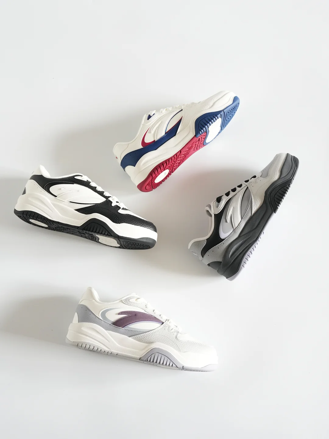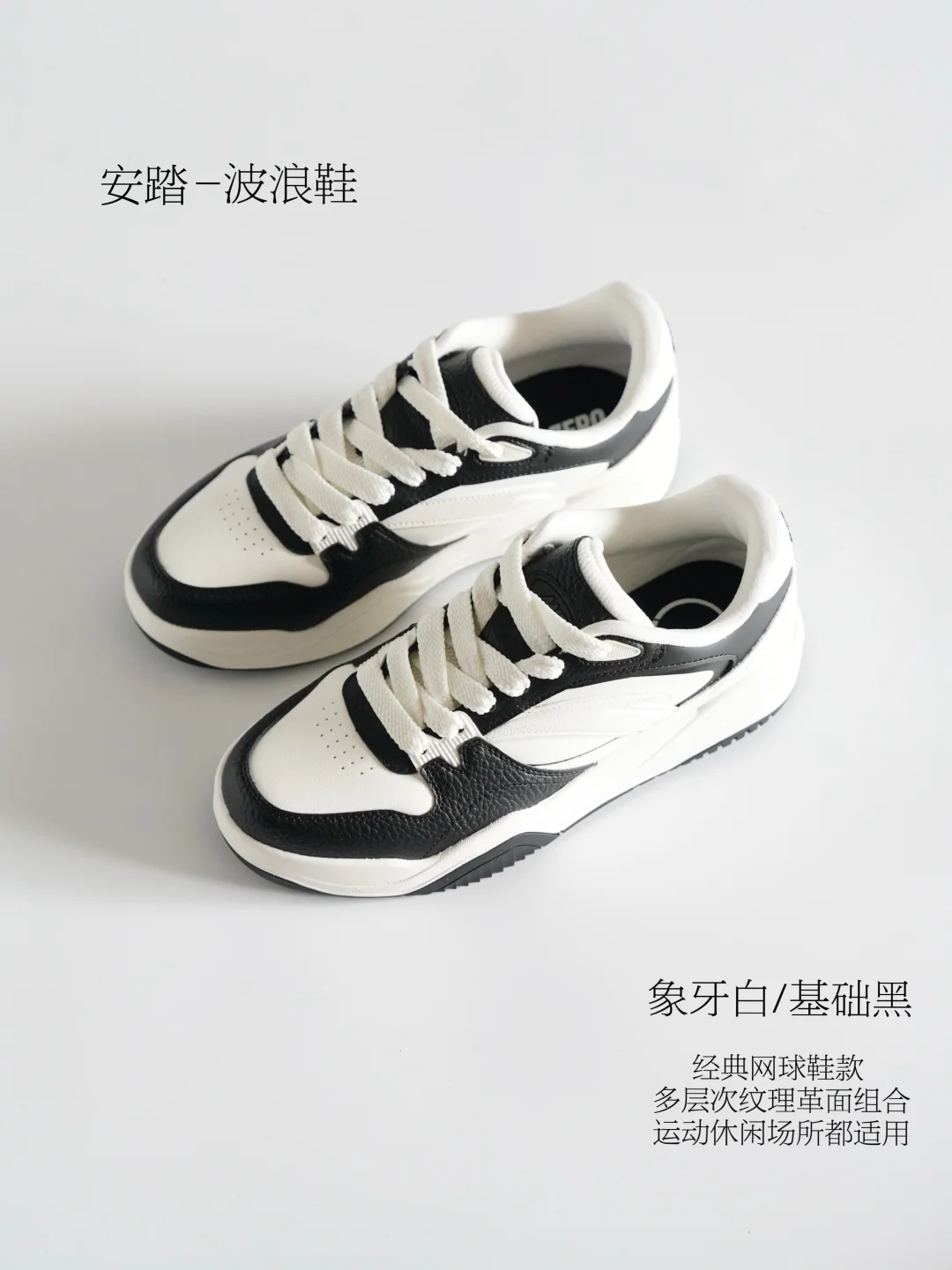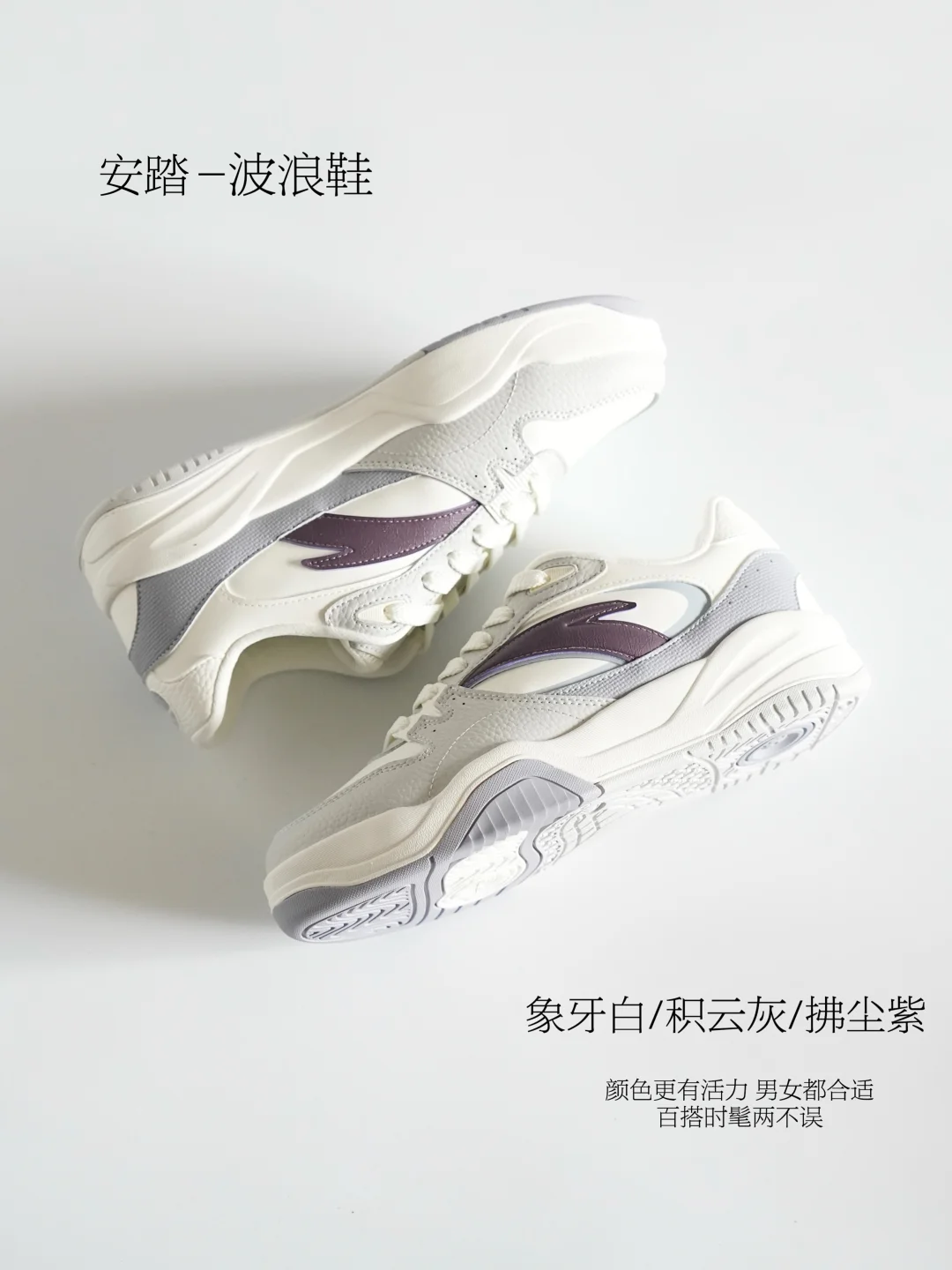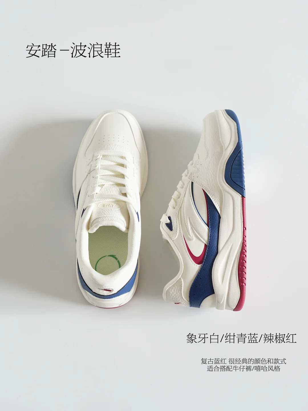 ANTA波浪鞋-象牙白/基础黑 ANTA波浪鞋-象牙白/绀青蓝/辣椒红 ANTA波浪鞋-象牙白/积云灰/拂尘紫 ANTA波浪鞋-信鸽灰/积云灰/基础黑 - 整体有些复古板鞋风格,是经典的网球鞋设计,多色颜色选择,上脚舒适有支撑感,日常通勤、运动、出街都很适合。