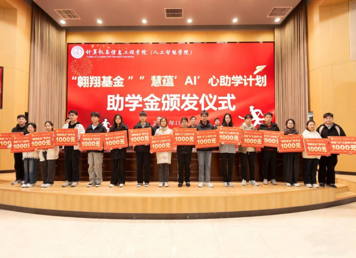 11月20日,河南师范大学计算机与信息工程学院(人工智能学院)首届“翱翔基金”与“慧蕴‘AI’心助学计划”助学金颁发仪式举行。学校校友与基金工作办公室、学院相关负责人、助学项目捐赠人、全体专兼职辅导员、受资助学生以及2025级学生代表300余人参加,仪式由学院党委副书记陈清利主持。