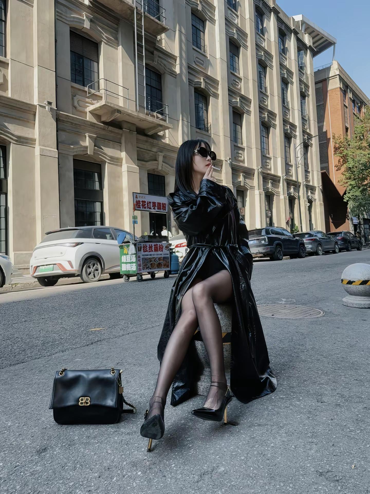把夜色当秀场,黑丝配金属尖跟鞋冷飒感拉满。灰西装一披是生人勿近的御姐...