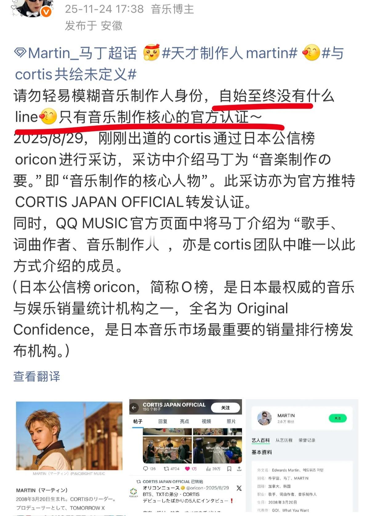 Martin马丁fans为什么要模糊James赵雨凡作为 Cortis制作人的创作能力和制作人 title?