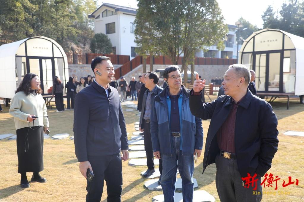 考察团一行先后走访了紫金山4A旅游景区、黄花公园、紫盖峰休闲度假区及衡山渡等重点文旅项目。老干部们边走边看、边听边问,深入了解项目建设规划与运营情况,他们对衡山县近年来在文旅产业发展、生态环境提升等方面取得的成效给予高度评价。