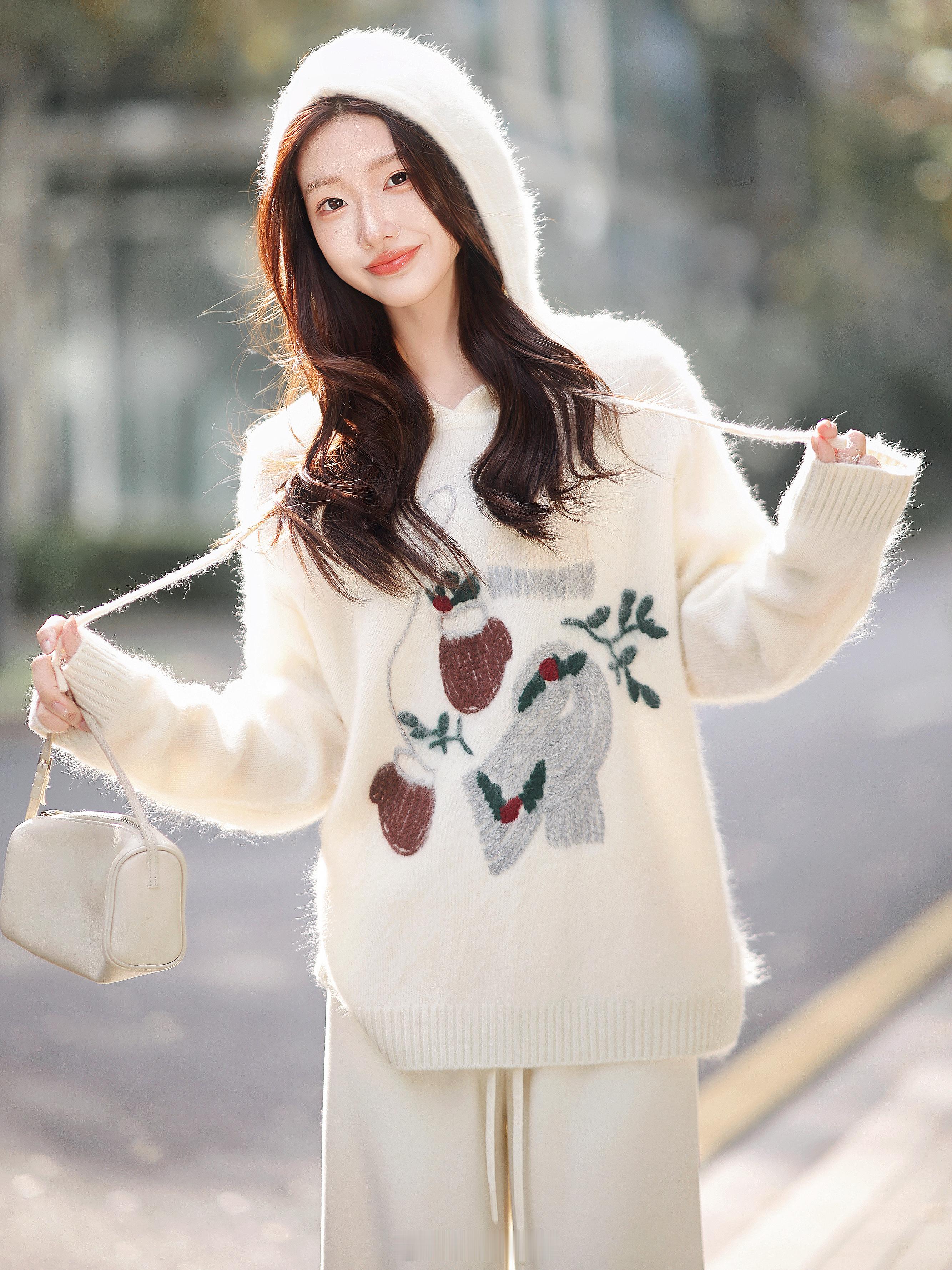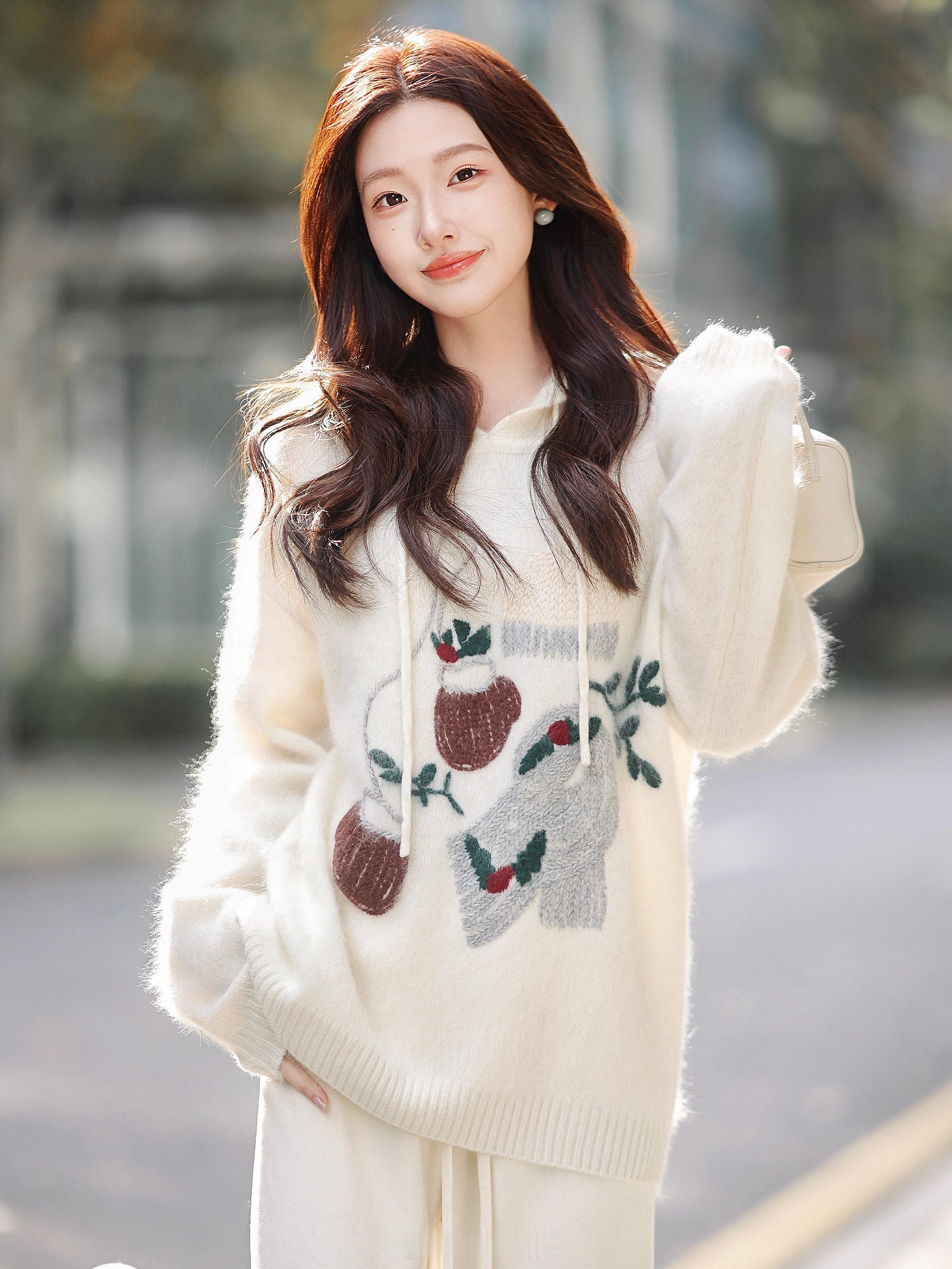 这毛衣的提花 莫名有种松弛与氛围兼备的范儿啊羊毛*山羊绒/拉绒工艺 还是连帽款双