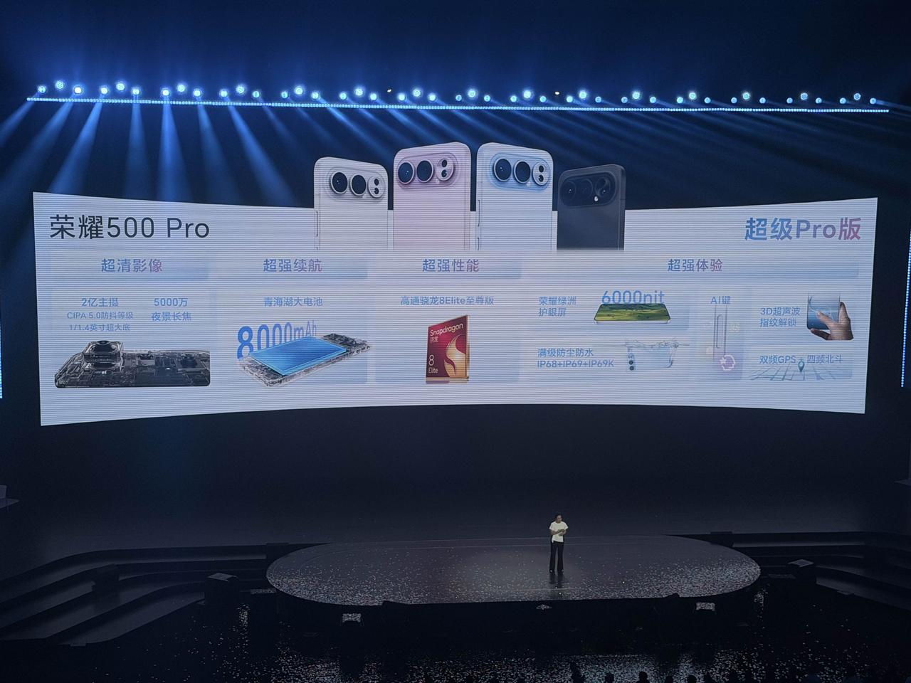 荣耀500系列正式发布,一共四款配色,海蓝宝、星光粉、月光银和曜石黑,2亿像素,8000mAh超大电池,标准版2699起,Pro版3599起,怎么样?[灵光一闪]