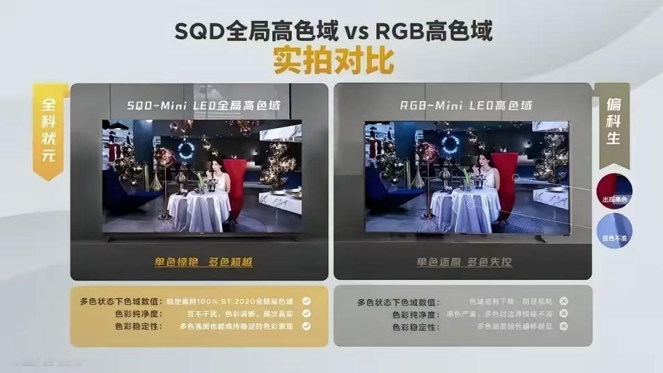 高色域还不够,看对比度!SQD-Mini LED爆款新标准来打样! 我们在选择电视时候,经常会听到导购在重点讲高色域,色域的高低确实是电视色彩的一个重要因素,但不是唯一要素。 这样说你可能有点懵,到底要怎么选才能选到好电视? 通过双十一全周期数据,足以说明问题,TCL电视用成绩说话,在金额和台数上双双第一,画质优势款呼声最高,说明大家还是把画质作为选择的第一要素。 但是选购要想少踩坑,记住两个画质关键词:对比度和色域,两者要强强联合才有1+1>2的画质效果。今年搭载SQD-Mini LED技术的型号就是结合了高对比度和高色域,另外还搭载了万象分区控光,画质又提到了一个新高度。 这种提升,可不是单纯堆色域参数,而是把“色彩纯度”和“光线掌控”一起拉满,简单的从技术上解释的话是利用高纯白光激发超级量子点材料的特性,再结合超级蝶翼华曜屏的高色阻滤光层过滤掉杂光,提升对比度,做到100% BT.2020的全局高色域,色彩稳定、不串色、不偏色;再靠万象分区,把一个分区顶多个分区的控光效果,亮的顶上去、暗的压下去,层次立体、细节才不糊。 可是,型号那么多怎么选? 建议优先看SQD技术款,这是未来的发展趋势,不易过时。真旗舰X11L堪称新机皇,98吋做到20736万象分区、峰值亮度达10000nits,而且可以做到超越OLED机身的2cm 极致超薄Mini LED,如果想要极致的画质影音体验,这款肯定要优先看。 如果想要万元段一步到位,可以考虑Q10L Pro是第四代液晶极景无黑边的标杆款,搭载的万象分区和镜面低反射屏幕,无黑边全面屏的效果看电影会更沉浸,很适合年轻家庭选择。 如果要预算更友好、还要抗反光和高亮的综合型选手,T7L Ultra全系XDR 3000nits,首个在此价位段大盘镜面抗反光屏的型号,这样白天客厅也清楚,另外支持4K的UI界面,按键就能开机享受清晰画面,是同价位最能打的一款。 总之,别再被数值困住了,对比度和色域都是高画质的必要条件,但不能因为色域而去牺牲控光和对比度,那样并不能成就好画质!