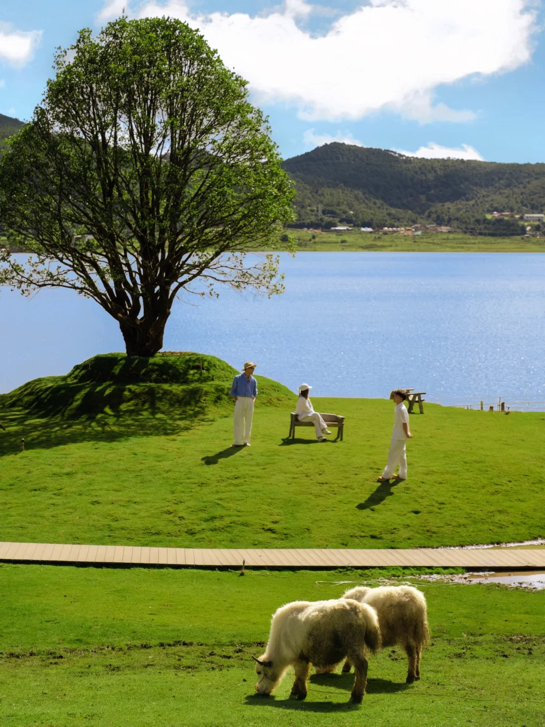前后丽江来了不下20次 街头巷尾早被我走成熟悉的旧地图 这几年我的旅行方式变了 不再忙着赶路 而是找家舒服的避世酒店 安安静静住上几天 目的地就是酒店本身 于是我一次次逃向文海 这地方藏在雪山脚下 不算热门 甚至有点原始 四季来了四次 每次都觉得值得 天气好的时候 天蓝得不像话 云低得仿佛在头顶伸手能够着 那种美是直接、不加修饰的 所以我总跟朋友说 来文海别匆匆路过 你得住一晚 从傍晚到清晨 看光线在草甸和湖面上流动 感受它不同时段的样子 近两次来我都住在丽思漫·溯野 它就在雪山脚下 不张扬 像长在这片风景里 窗外是成片的草甸、吃草的牛羊、安静的湖 惊喜的是 如果你又刚好碰上好天气 还能在房间里看着日照金山在眼前慢慢展开 那不是什么景点表演 而是一种安静的自然馈赠 那一刻你会觉得 有些风景 值得你停下来等 对了~也不用担心会无聊 溯野准备了很多体验等着 - 我是佐伊Zoey 和你越己阅世界🗺️