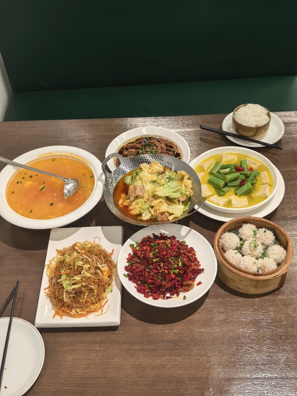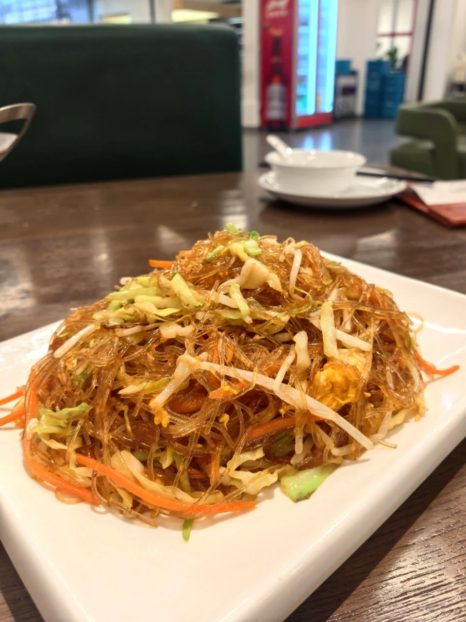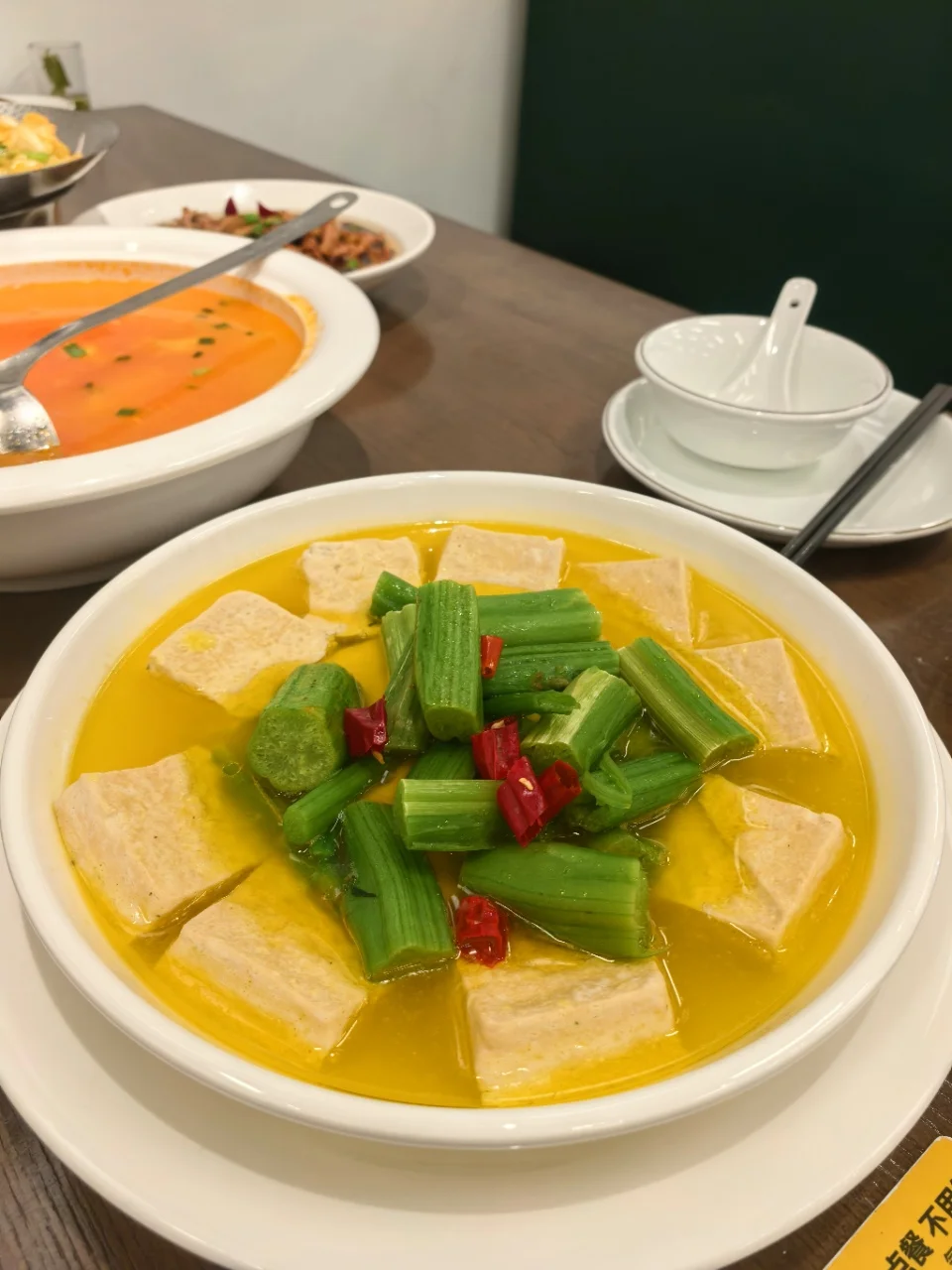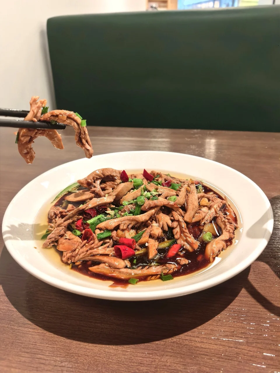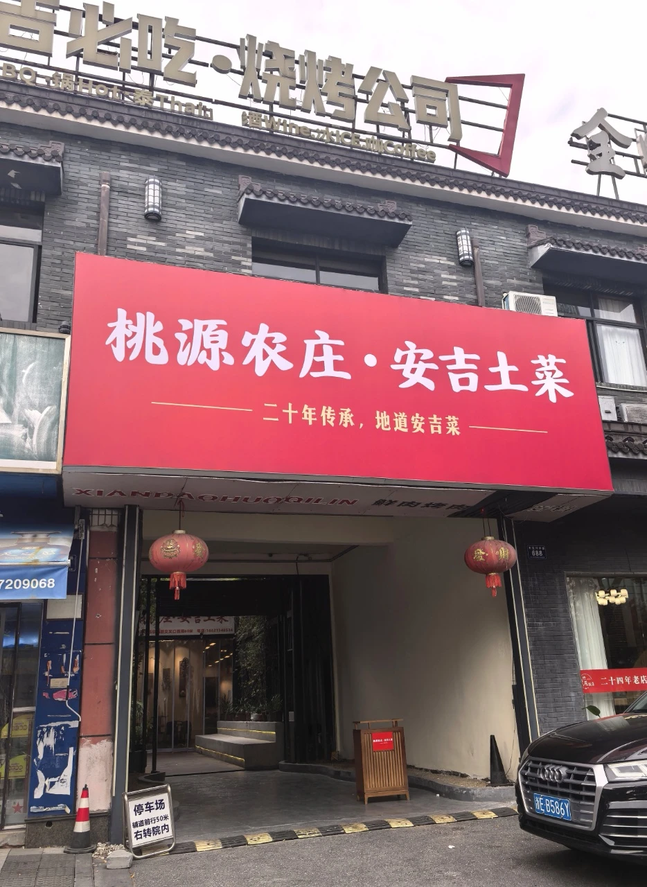 工作日打卡了位于安吉县城中心的桃源农庄🍃,环境是真的大,地道土菜没踩雷,吃完直接列入二刷清单🎈🎈🎈 🏠店名:桃源农庄·安吉土菜 🚗地址:安吉县天荒坪中路688号(旁边有停车场,开车无压力) ❤人均:42/人 这家店真的太适合聚餐、团建了,重点是空间超大😇!没有隔间和包厢,所有餐桌都在一个开阔空间里,自带土菜大排档的烟火气🎇,坐下来就觉得放松又热闹,心情都跟着变好~ 我们盲点了几道招牌菜,每道都很下饭,妥妥的干饭宝地🍚! 【牛油煸鸭脚筋】上桌就是满满一盆🥘,爆炒的辣椒香气扑鼻🌶️,爱吃辣的直接狂喜🤭!藏在辣椒里的鸭脚筋裹着牛油,香到在嘴里快要化开,越嚼越香,根本停不下来✅。 【葱油腰花】完全颠覆对腰花的刻板印象✨!腰花处理得特别干净,口感鲜嫩到极致😋,没有一丝腥味,浓郁的葱油香裹着每一片腰花,一口下去香到舔盘👅。 【苋杆臭豆腐】不愧是本地人冬天的心头好❄️!腌制的苋杆搭配臭豆腐一起蒸,自带独特的“臭香”口感👃,还带着淡淡的辣味,越吃越开胃,配米饭能多炫两碗👍! 【珍珠肉圆】糯米的软糯和肉圆的鲜香完美融合🍡,一口咬下去,糯米吸饱了肉汁,香糯入味😋。肉圆是肥瘦相间的鲜肉手工捏制,劲道十足,老人小孩都爱吃🥰。 【农家炒粉丝】土菜馆的灵魂菜品,这家直接封神🔥!粉丝炒得不干不坨,根根分明🥢,吸足了汤汁的鲜香,味道浓郁又不腻,当作主食再合适不过啦🌟。 味道正、空间大,不管是朋友小聚还是公司团建,来这里都超合适🥳,下次聚餐直接锁定这家!