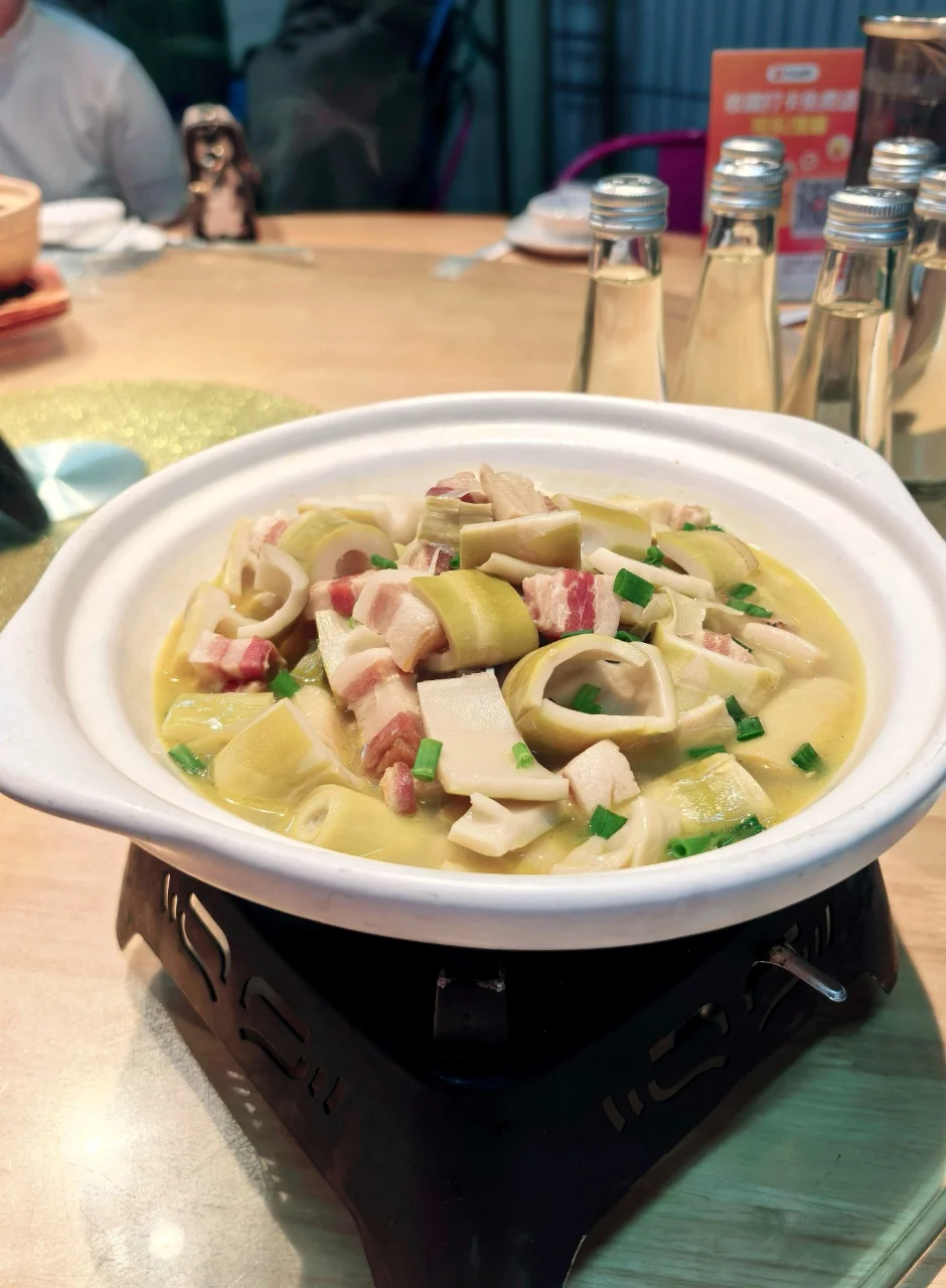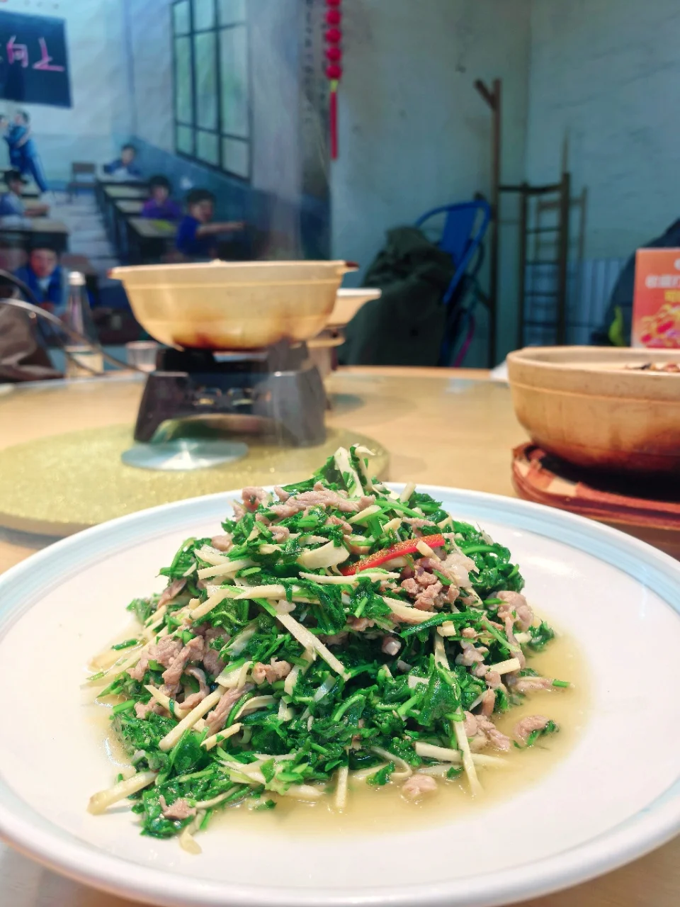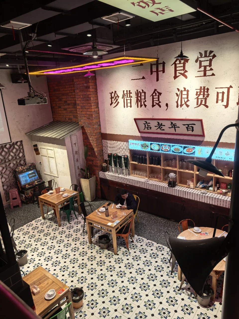我想开这家店的老板一定是一个很有情怀的人。不然怎么会勾起我们对学生时期在安吉老二中里的回忆呢?不仅好吃地道,还给足了情绪价值🎈🎈 🌈安吉老递铺土菜馆 地址:天荒坪中路九州昌硕广场6幢56号 人均:79 走进这家店,怀旧的装修一下子把我带入进了八十年代的场景里❤❤穿过长廊,眼前是中间大堂和几个包厢,在颇有年代感的灯光照射下,坐在桌上用餐的客人仿佛是从回忆里穿越过来的老师和同学,亲切感油然而生👀,坐在位置上,听着老歌,回忆阵阵袭来,心里暖暖的,心情格外好。 菜单上列着一个个熟悉的菜名🍊,是我们安吉人吃的家常菜。这个时节,来安吉要吃锅子,咕嘟咕嘟炖着冒着热气,能驱寒不少寒意,推荐一些: ✔️【特色安吉船头鱼】 咕嘟翻滚的红烧安吉船头鱼,慢炖出浓醇胶质,酱汁裹满每一寸鱼肉,咸香回甘交织。 ✔️【鹿茸菇猪肚锅仔】山野间孕育的鹿茸菇,搭配弹嫩猪肚焖煮成锅,菇脆肚弹、汤汁浓醇,每一口都是自然本味与烟火气息的完美交融。 ✔️【农家石磨豆腐】 慢火炖得绵密入味,吸饱了汤汁的鲜,入口滑嫩又带点弹劲,唇齿留香,简单一块,却比山珍海味更暖心! ✔️【腌菜冬笋烧肉锅仔】农家腌菜、安吉冬笋与五花肉同炖成锅,酸香解腻,笋脆肉糯,汤汁浓郁下饭,是刻在安吉人记忆里的烟火珍馐。 炒菜很能见功夫,一口就尝的出是否是安吉味道,卤菜也很见水准,本地人亲测:老递铺的安吉菜很地道。推荐一些: ✔️【荠菜冬笋炒肉丝】山野的荠菜冬笋炒肉丝,简单得很,却鲜得勾魂!笋脆菜嫩肉弹牙,吃的就是这份自然本味,别处可寻不到这般清爽。 ✔️【山里人番薯粉】炖透的番薯粉可太妙了!软乎乎裹着浓醇汤汁,每一口都藏着山野的朴实甜香,吃的就是这份原汁原味。 ✔️【脆皮竹林鸡】要说吃鸡的好滋味,还得是安吉的脆皮竹林鸡!外皮焦香弹牙,内里嫩滑入味,每一口都裹着山野的灵气,这才是大自然馈赠的地道美味。 在这里,吃饭的心情很好,吃的是一个味道,也是一份情怀。