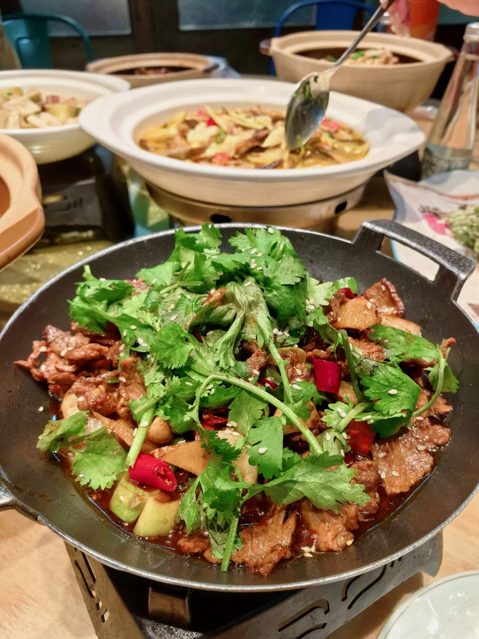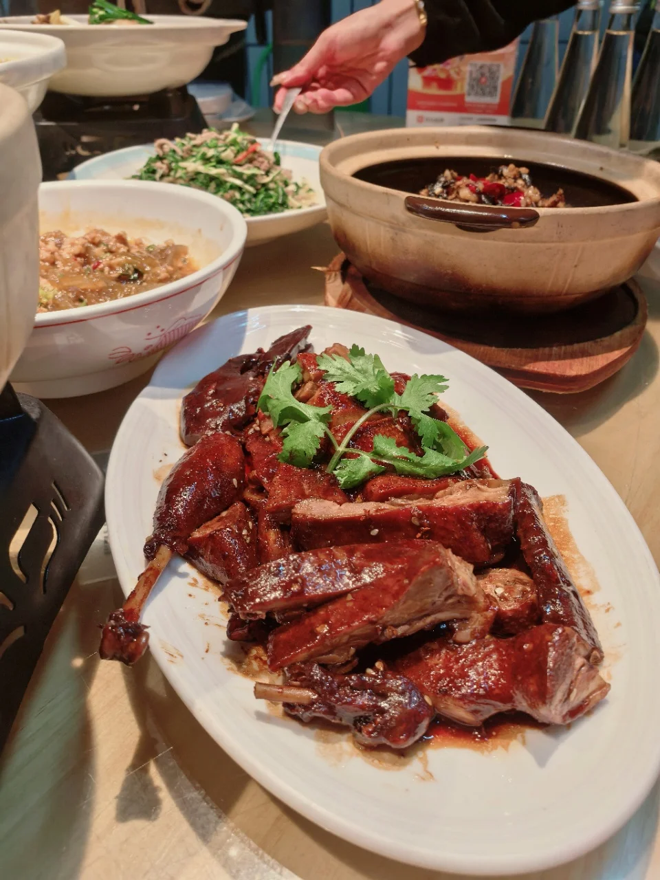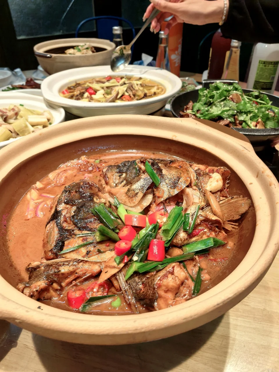 我想开这家店的老板一定是一个很有情怀的人。不然怎么会勾起我们对学生时期在安吉老二中里的回忆呢?不仅好吃地道,还给足了情绪价值🎈🎈 🌈安吉老递铺土菜馆 地址:天荒坪中路九州昌硕广场6幢56号 人均:79 走进这家店,怀旧的装修一下子把我带入进了八十年代的场景里❤❤穿过长廊,眼前是中间大堂和几个包厢,在颇有年代感的灯光照射下,坐在桌上用餐的客人仿佛是从回忆里穿越过来的老师和同学,亲切感油然而生👀,坐在位置上,听着老歌,回忆阵阵袭来,心里暖暖的,心情格外好。 菜单上列着一个个熟悉的菜名🍊,是我们安吉人吃的家常菜。这个时节,来安吉要吃锅子,咕嘟咕嘟炖着冒着热气,能驱寒不少寒意,推荐一些: ✔️【特色安吉船头鱼】 咕嘟翻滚的红烧安吉船头鱼,慢炖出浓醇胶质,酱汁裹满每一寸鱼肉,咸香回甘交织。 ✔️【鹿茸菇猪肚锅仔】山野间孕育的鹿茸菇,搭配弹嫩猪肚焖煮成锅,菇脆肚弹、汤汁浓醇,每一口都是自然本味与烟火气息的完美交融。 ✔️【农家石磨豆腐】 慢火炖得绵密入味,吸饱了汤汁的鲜,入口滑嫩又带点弹劲,唇齿留香,简单一块,却比山珍海味更暖心! ✔️【腌菜冬笋烧肉锅仔】农家腌菜、安吉冬笋与五花肉同炖成锅,酸香解腻,笋脆肉糯,汤汁浓郁下饭,是刻在安吉人记忆里的烟火珍馐。 炒菜很能见功夫,一口就尝的出是否是安吉味道,卤菜也很见水准,本地人亲测:老递铺的安吉菜很地道。推荐一些: ✔️【荠菜冬笋炒肉丝】山野的荠菜冬笋炒肉丝,简单得很,却鲜得勾魂!笋脆菜嫩肉弹牙,吃的就是这份自然本味,别处可寻不到这般清爽。 ✔️【山里人番薯粉】炖透的番薯粉可太妙了!软乎乎裹着浓醇汤汁,每一口都藏着山野的朴实甜香,吃的就是这份原汁原味。 ✔️【脆皮竹林鸡】要说吃鸡的好滋味,还得是安吉的脆皮竹林鸡!外皮焦香弹牙,内里嫩滑入味,每一口都裹着山野的灵气,这才是大自然馈赠的地道美味。 在这里,吃饭的心情很好,吃的是一个味道,也是一份情怀。