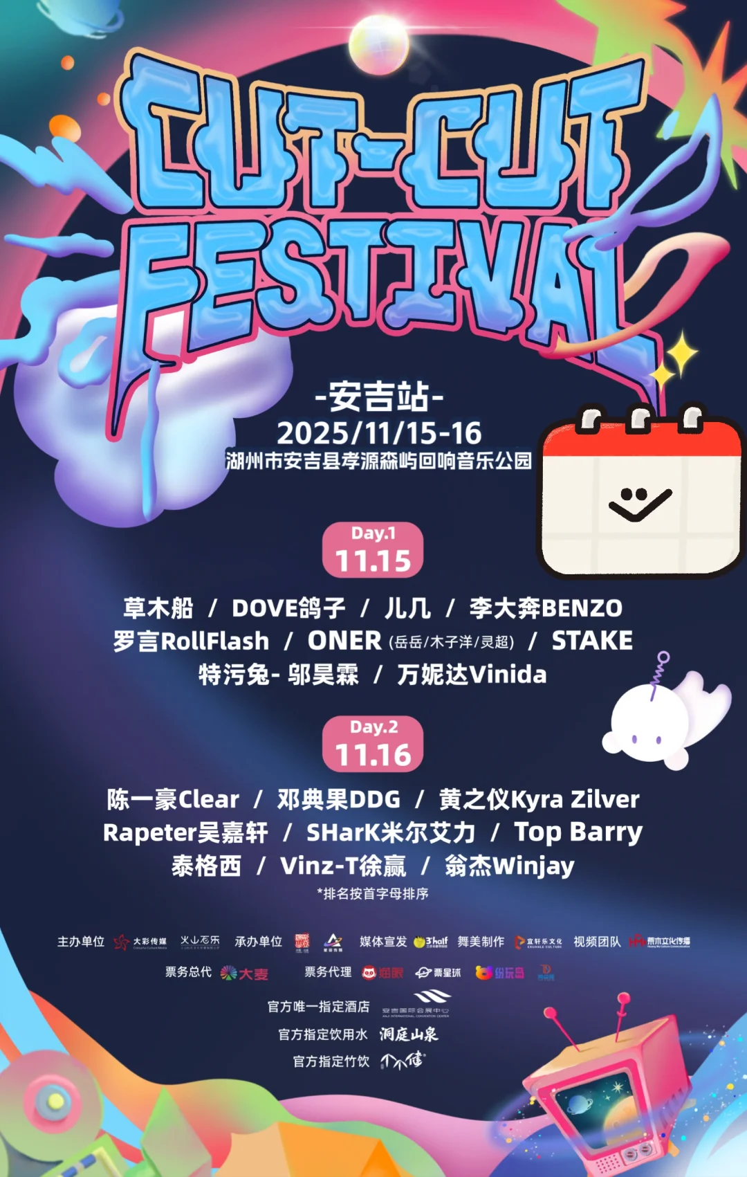 就在这周末,安吉又又又要办音乐节啦~2025 CUT-CUT FESTIVAL音乐节来啦[举手R][举手R] 时间:11月15日-11月16日 地址:安吉孝源森屿回响音乐公园(安吉县安吉职业教育中心学校东北侧60米) 👀 Day.1(11.15)阵容草木船/ DOVE鸽子/ 儿几/ 李大奔BENZO/罗言RollFlash/ ONER(岳岳/木子洋/灵超)/ STAKE/ 特污兔-邬昊霖/万妮达Vinida Day.2(11.16)阵容陈一豪Clear/ 邓典果DDG/ 黄之仪Kyra Zilver/ Rapeter吴嘉轩/ SHark米尔艾力/ Top Barry/ 泰格西/ Vinz-T徐赢/翁杰Winjay [气球R]周边游(15公里内) .造梦学院:烧烤+咖啡,网名景区 .九州昌硕广场:安吉网红餐饮聚集区,美食服饰,还有安吉“胖东来”可以逛吃。 .奇幻嘉乐比:安吉日游+夜游好去处,本月园区还有万圣节主题的大派对。 .竹博园:可以看3只大熊猫,坐熊猫观光车。 🍊小贴士 1️⃣跟着音乐游安吉,期间可以凭票享美食、景区、民宿等优hui哦~很多地方直接打5zhe~具体可以到店咨询哦。 2️⃣本周末两天,安吉天气晴,温度在5-20度左右,晚上有点冷,带好外套夜晚蹦迪~ 去音乐节野餐 不止音乐节 音乐节第一视角 没人比我更懂音乐节 安吉CUT音乐节 总要去听一次音乐节 cutcut音乐节 音乐节穿搭