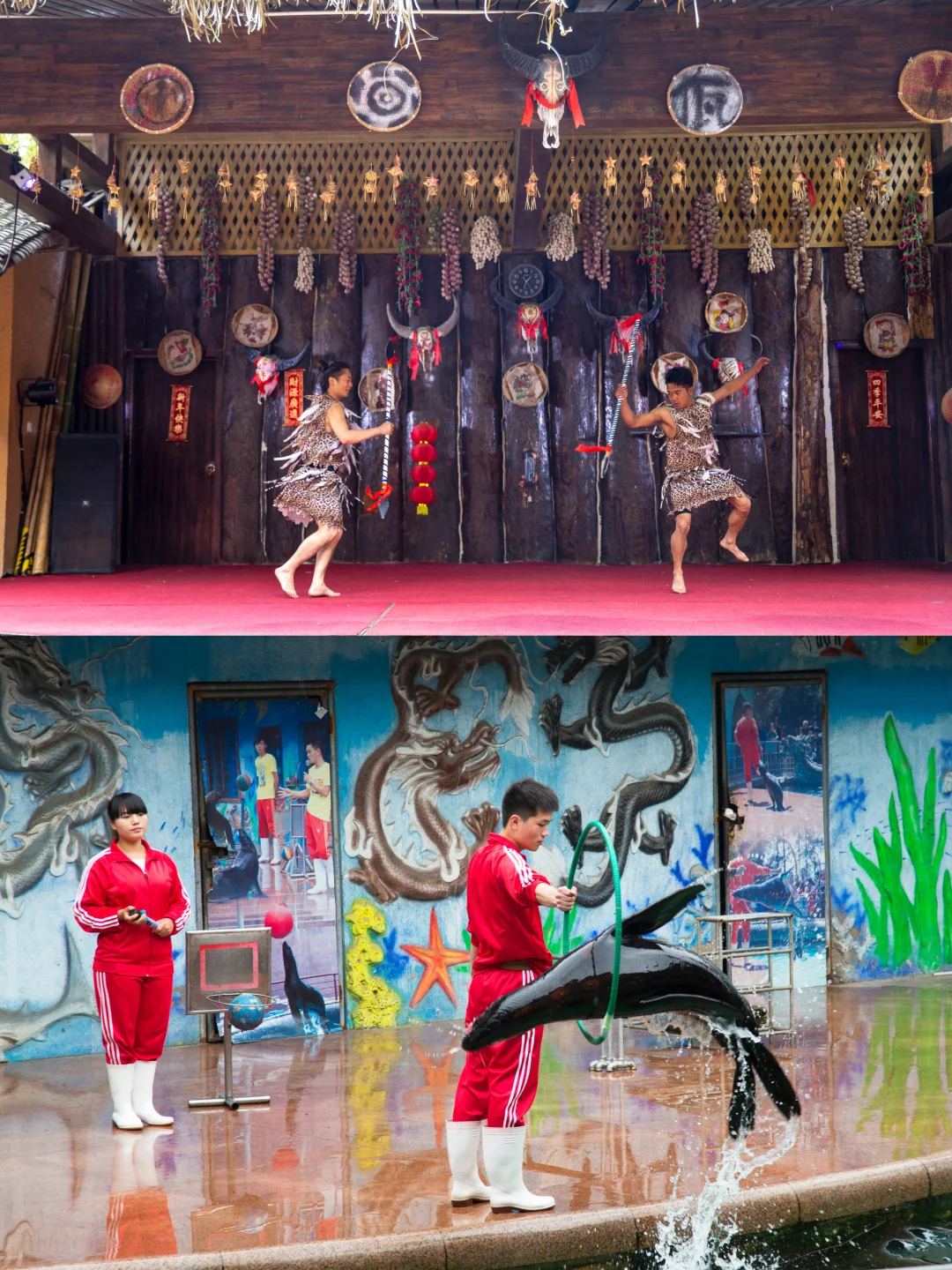 表演密集又精彩,狮虎同台、海狮卖萌、佤族歌舞、铁壁飞车轮番上演。