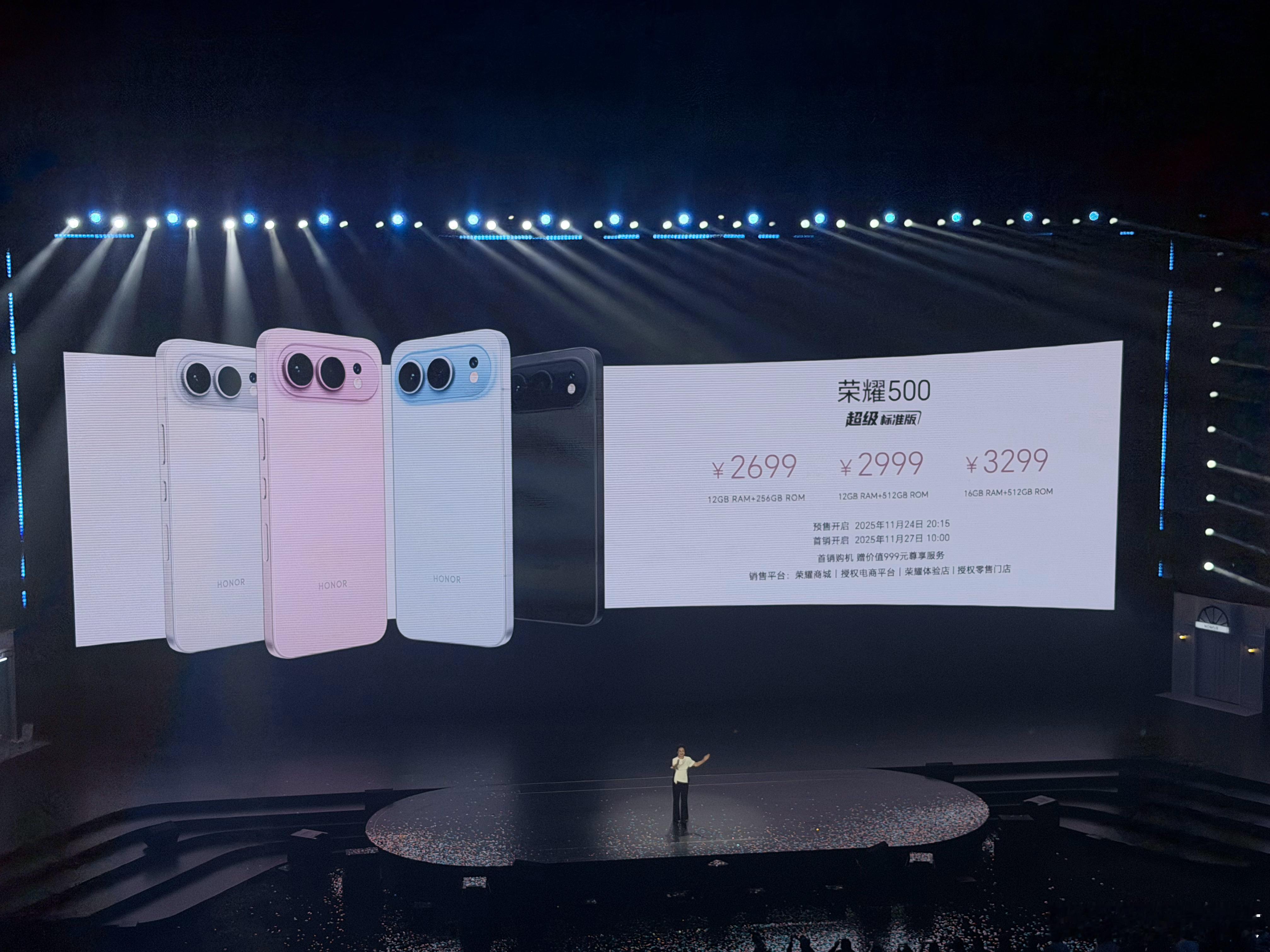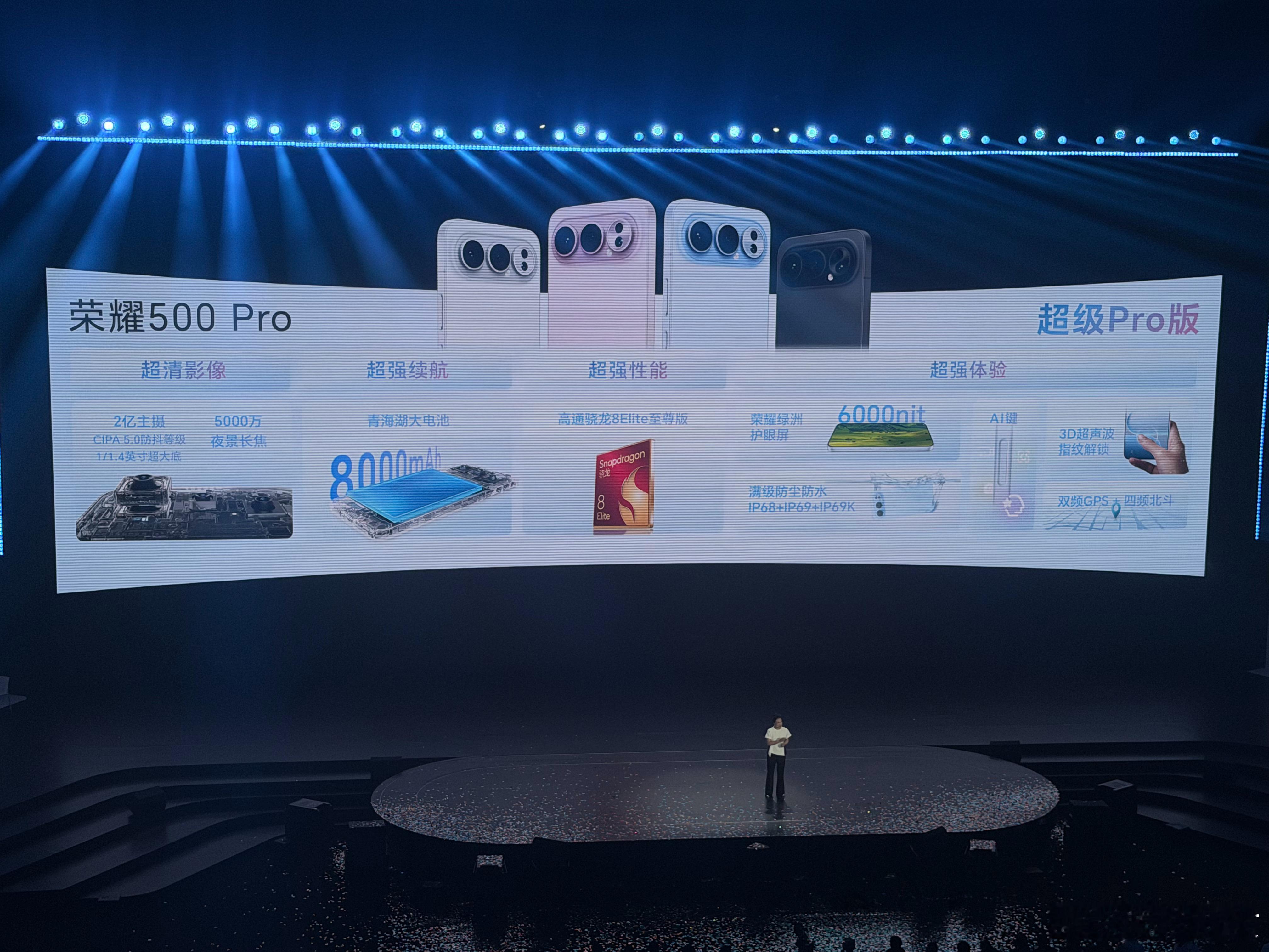 荣耀500系列正式发布,一共四款配色,海蓝宝、星光粉、月光银和曜石黑,2亿像素,8000mAh超大电池,标准版2699起,Pro版3599起,怎么样?