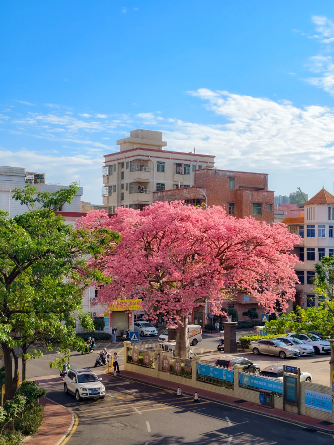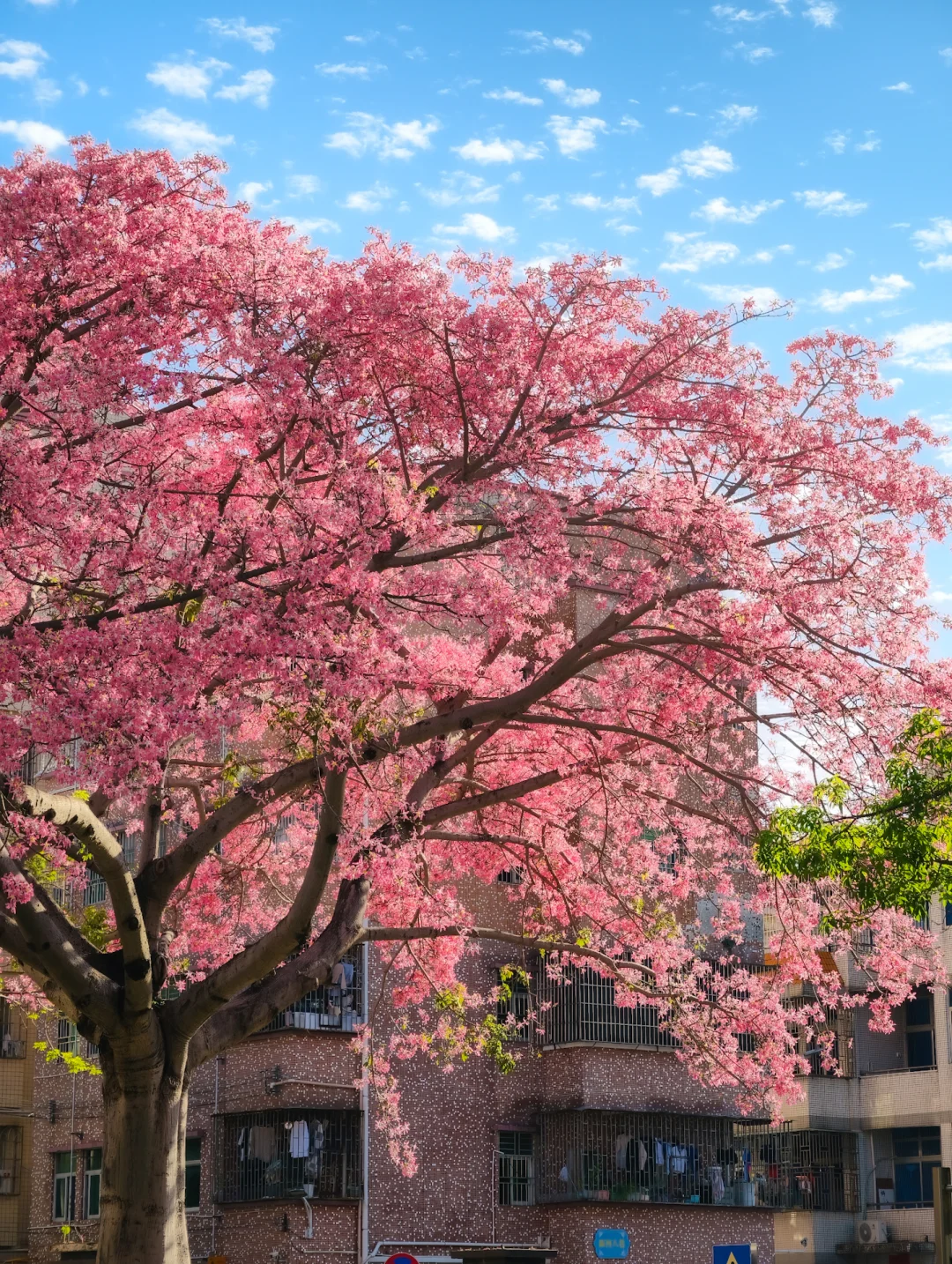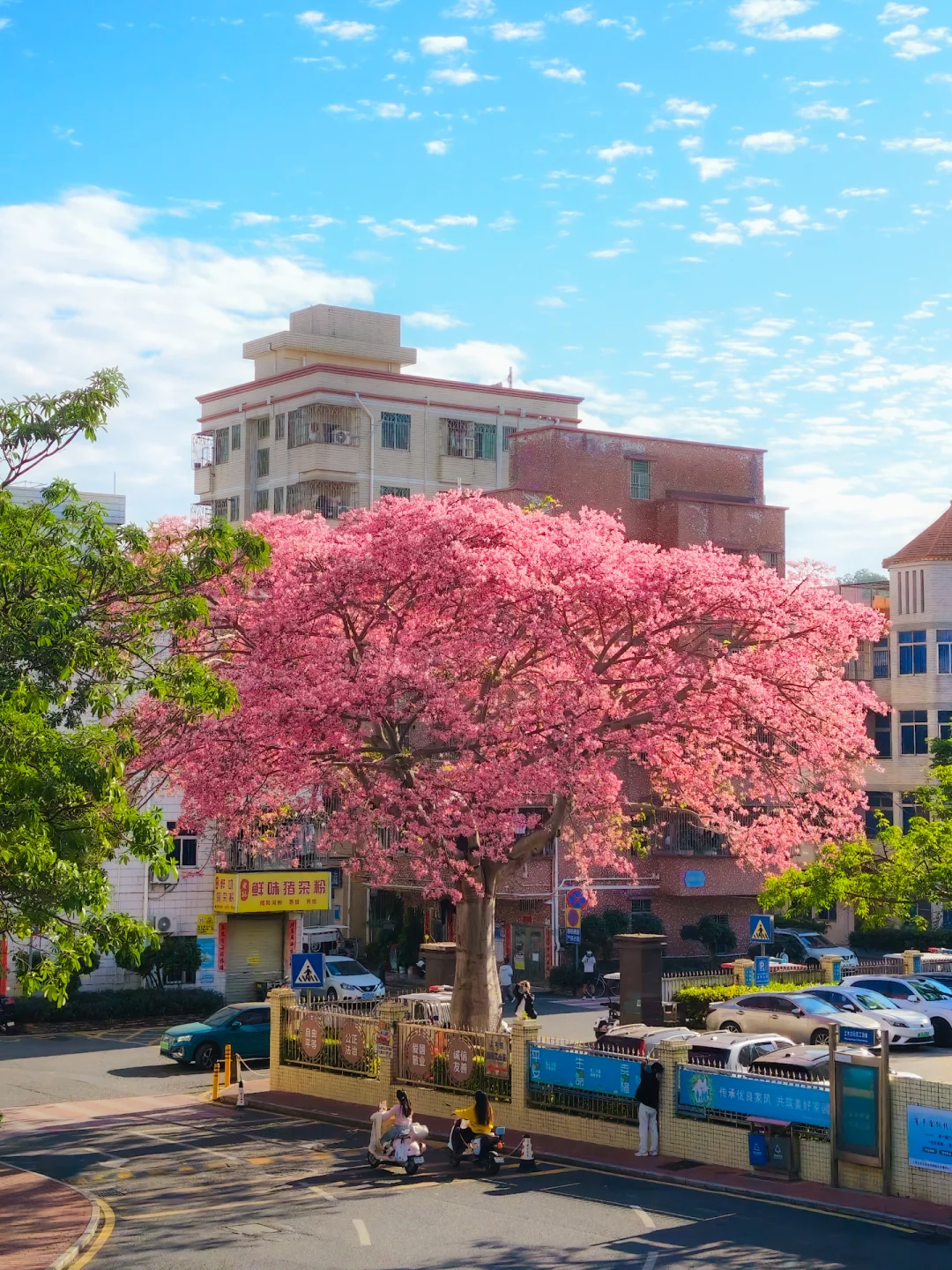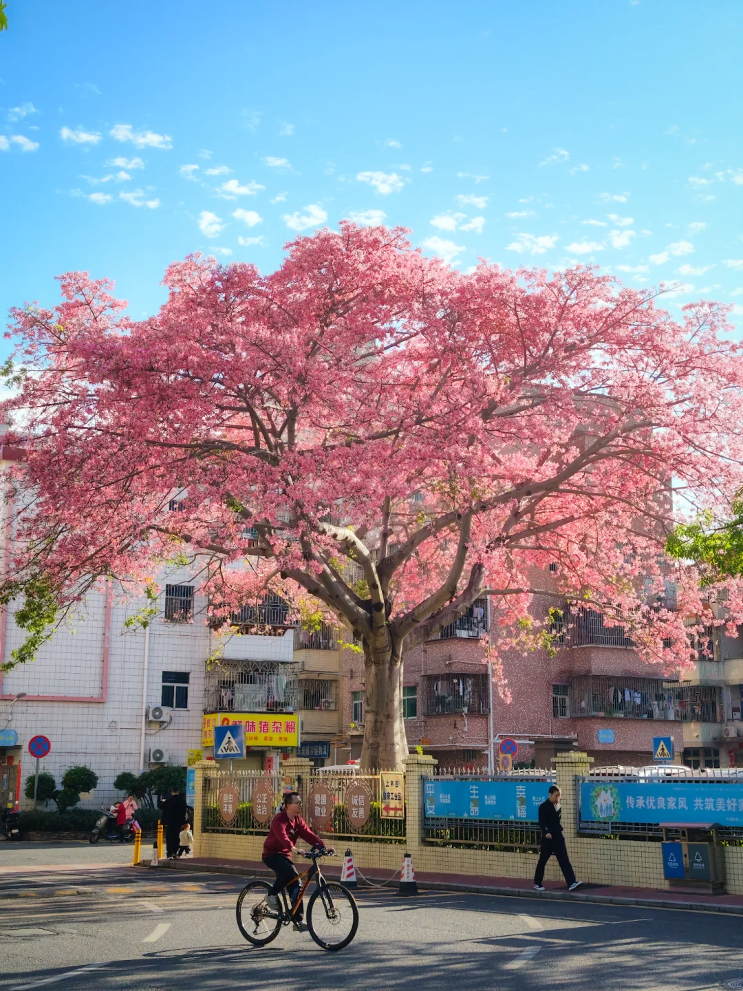 上木古的异木棉花王进入最佳观赏期了📢 满树都是粉色的烂漫🌸,蓝天白云下,仿佛像走进了动漫世界 路过的人都忍不住放慢脚步,驻足欣赏… 最近天气都很好,随时可以冲[派对R] 📍地址:上木古社区党群服务中心院内 🚇地铁:地铁10号线“木古站”D出口,导航上木古社区党群服务中心,步行400多米