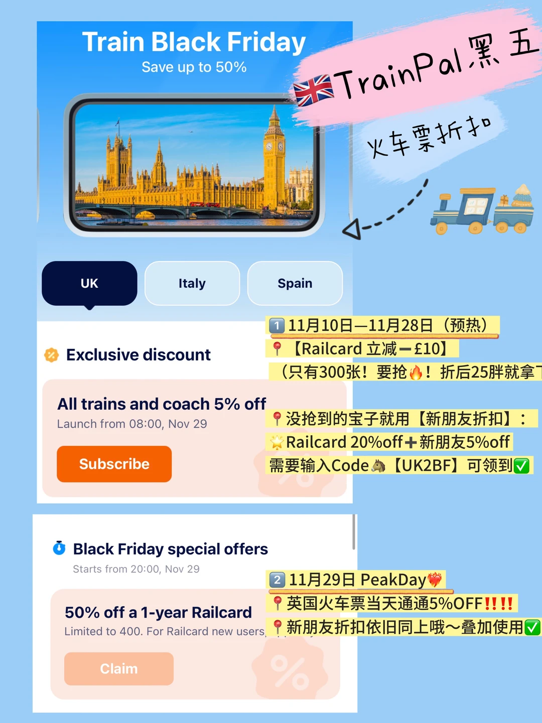 🇬🇧英国黑五全面开启!火车票折扣也在TrainPal开抢啦🔥这次力度也很大!
