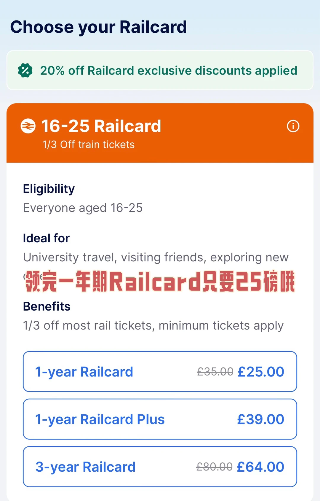 🌟Railcard 20%off➕新朋友5%off