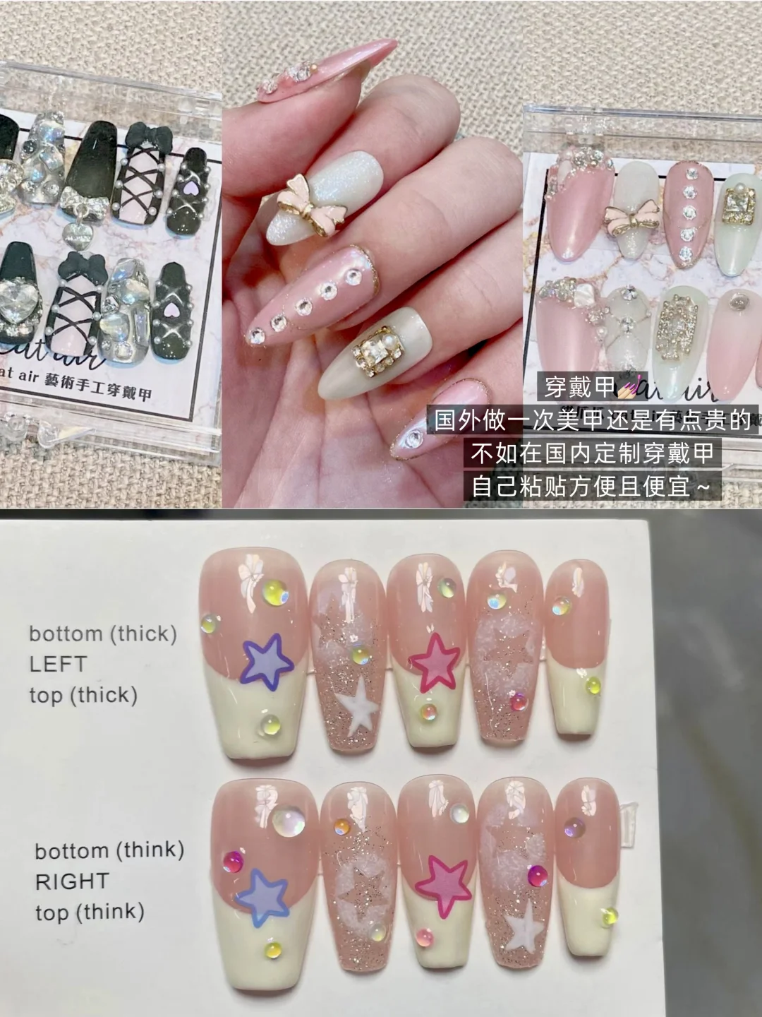 英国做美甲很贵,且没有国内款式好看!所以可以多🍑一些穿戴甲!自己用果冻胶贴很方便,且便宜!