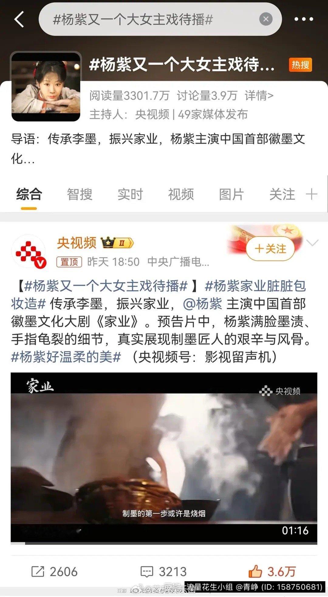 三大官媒集体宣传杨紫新剧《家业》 排面🈶