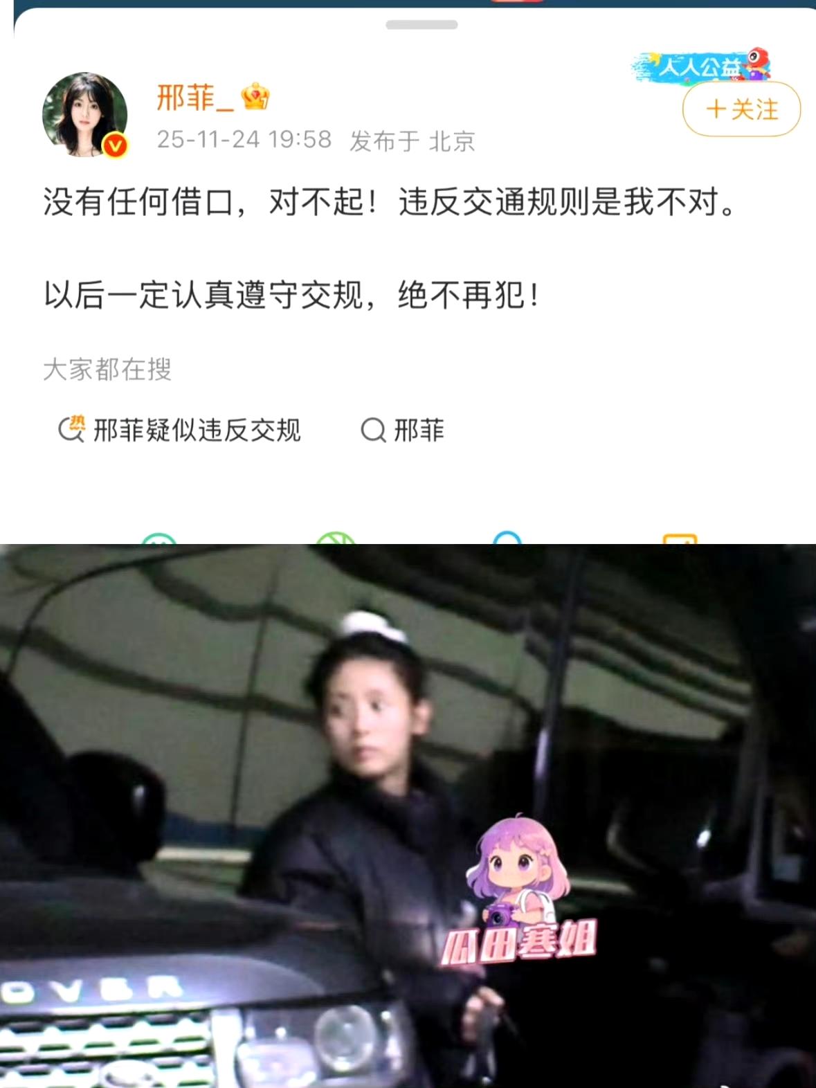 “邢菲疑似违反交规”这个话题上了热搜第一,我是没想到的! 这真的是没什么新闻可