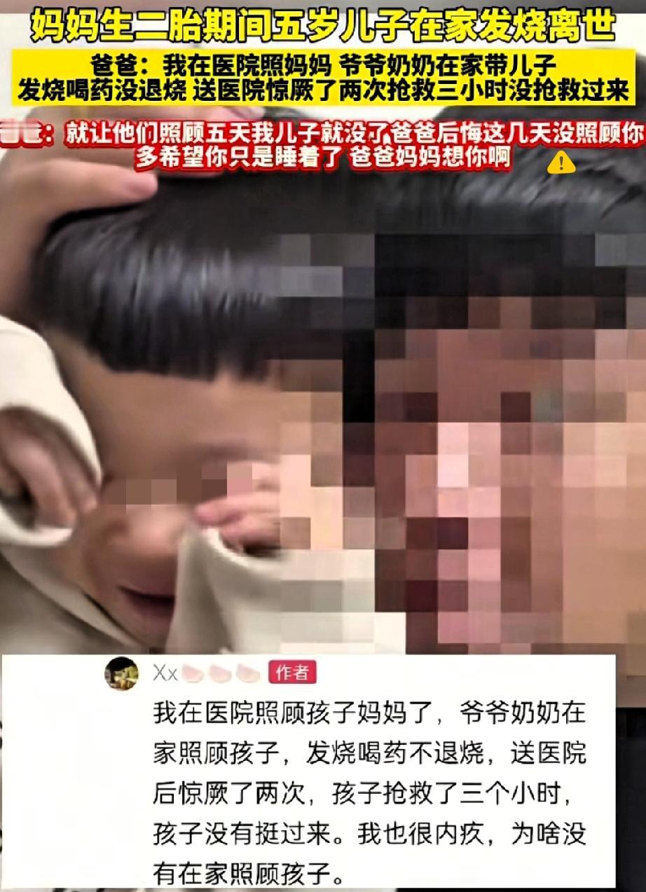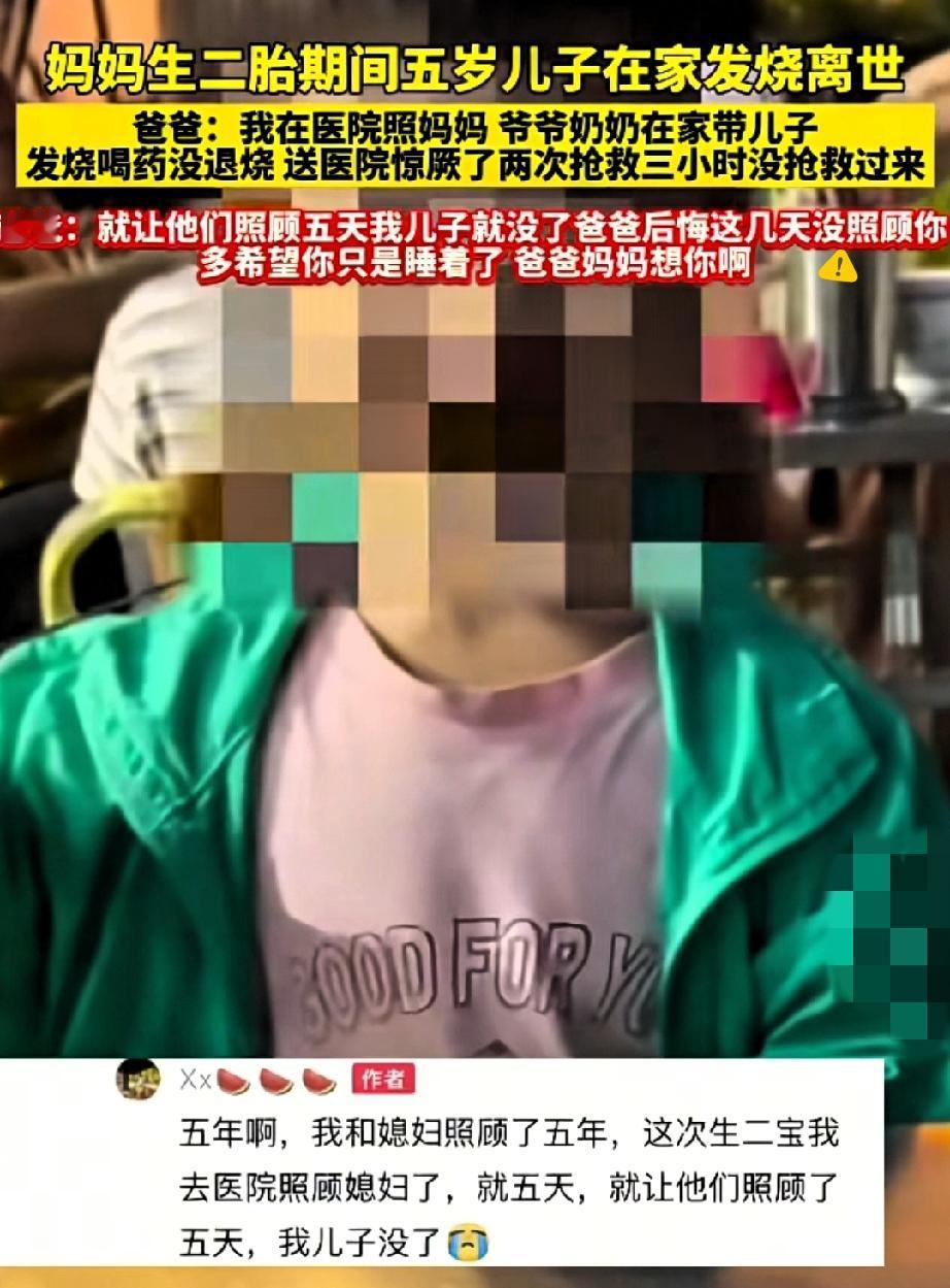 心碎到窒息! 妈妈医院生二胎,5岁大儿子在家被爷爷奶奶照顾5天,就因高烧惊厥离世