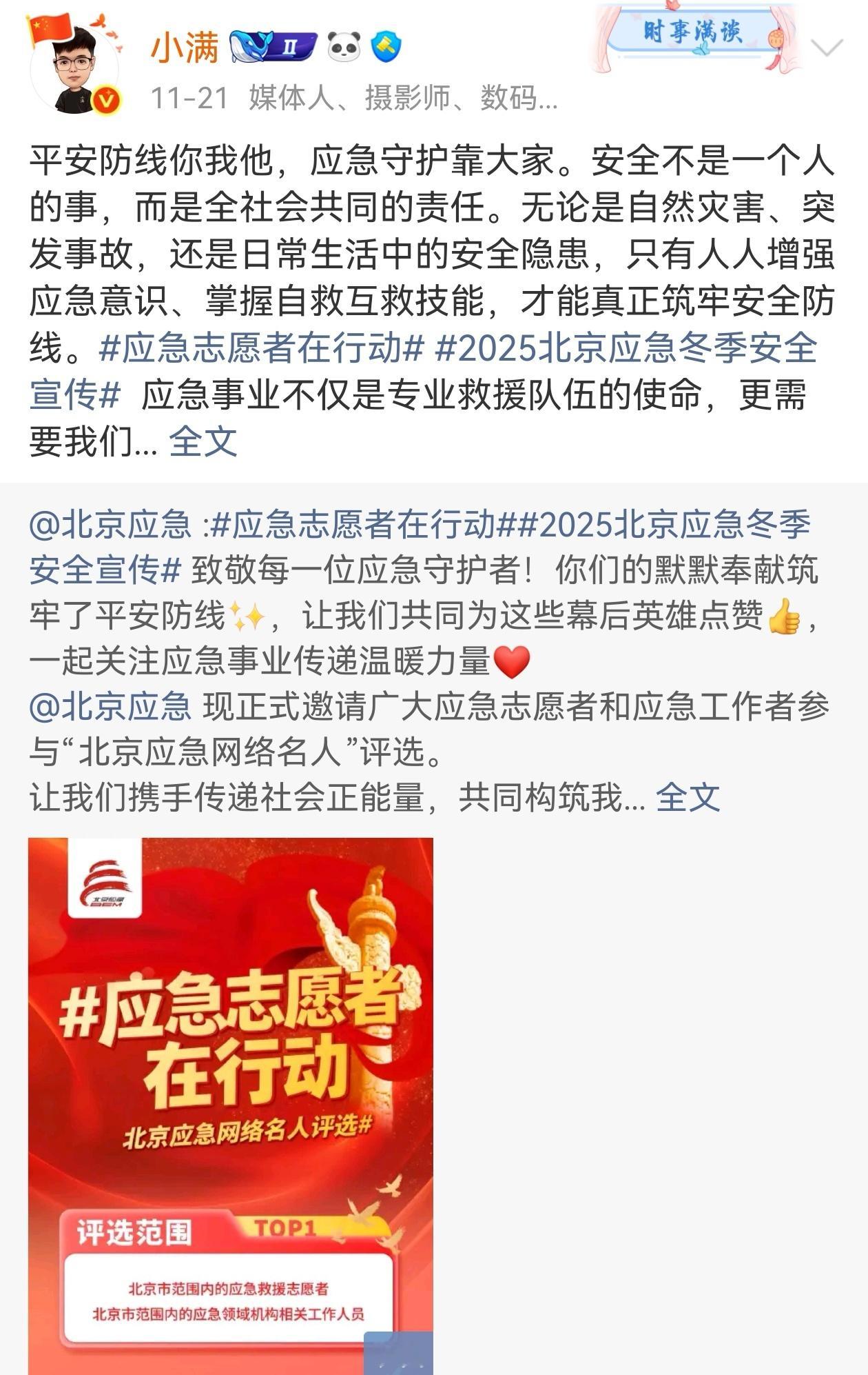 面对自然灾害、突发事故,还是日常生活中的安全隐患,应急救援相关知识,是每个人都需要掌握的,只有人人增强应急意识、掌握自救互救技能,才能真正筑牢安全防线。平安防线你我他,应急守护靠大家,与 携手,关注公共安全,学习应急知识,共同构筑我们的安全生活。作为一名时事领域博主,个人近年来致力于应急科普宣传,并结合突发事件、热点事件,向公众普及应急安全相关知识,更身体力行、践行应急安全演练、救援科普等活动。平安北京,你我共守。从地震、火灾到日常隐患,灾难从不预告,但我们可以提前准备。近年来,个人多次参与 针对应急救援的演练、科普活动,用通俗语言进行应急科普的同时,深切感受到北京应急宣传工作的专业、暖心。近年来,北京应急宣传积极发挥互联网先导优势,让应急救援安全知识实现破圈传播,从“看得懂”到“玩得转”再到“传得开”,将“单向灌输”的说教模式,转变为“全民参与”的互动打卡,并联合网络大V、消防队伍、社区等力量,从线下到线上,多方位、全角度、立体式进行应急救援的安全知识科普。在我看来,北京应急的创新宣传模式,针对不同人群进行寓教于乐的科普宣传,让安全理念融入日常,在网络讲好故事,带动“人人学应急”,进而实现“人人会应急”。具体来看:在平谷区镇罗营镇灾后重建现场,北京应急让公众直观感受“北京速度”与“民生温度”;京津冀森林草原火灾联合处置应急演练,则让广大网友理解消防员的不易,意识到森林防火的重要性;国际减灾日走进校园,北京应急开展的安全科普活动,更将安全科普融入各种趣味互动。人人学应急,人人会应急。应急不是口号,是每一次弯腰避险、每一次正确施救、每一次把“万一”变成“还好”。愿与 并肩,把“我会”变成“我们都会”,把自救互救的力量传递给更多人,让安全成为这座城市最温暖的底色,以下是部分原创应急知识及个人参与相关活动的链接。北京大兴区安全宣传科普活动:北京平谷区应急管理灾区回访:京津冀森林草原火灾联合处置应急演练:国际减灾日科普宣教活动:教科书式的“空中救援”:北京遭遇极端强降雨天气后应急救援:聚焦北京暴雨:北京应急安全生产和消防工作通气会:北京市森林消防综合救援演练:探访北京公共安全体验馆:暴雨期间自救科普:拉萨市东嘎先锋集结号应急救援队:手机地震预警功能设置科普:毒蘑菇科普:充电宝安全事件科普:乘坐飞机应急安全出口科普:云南哀牢山应急救援科普: