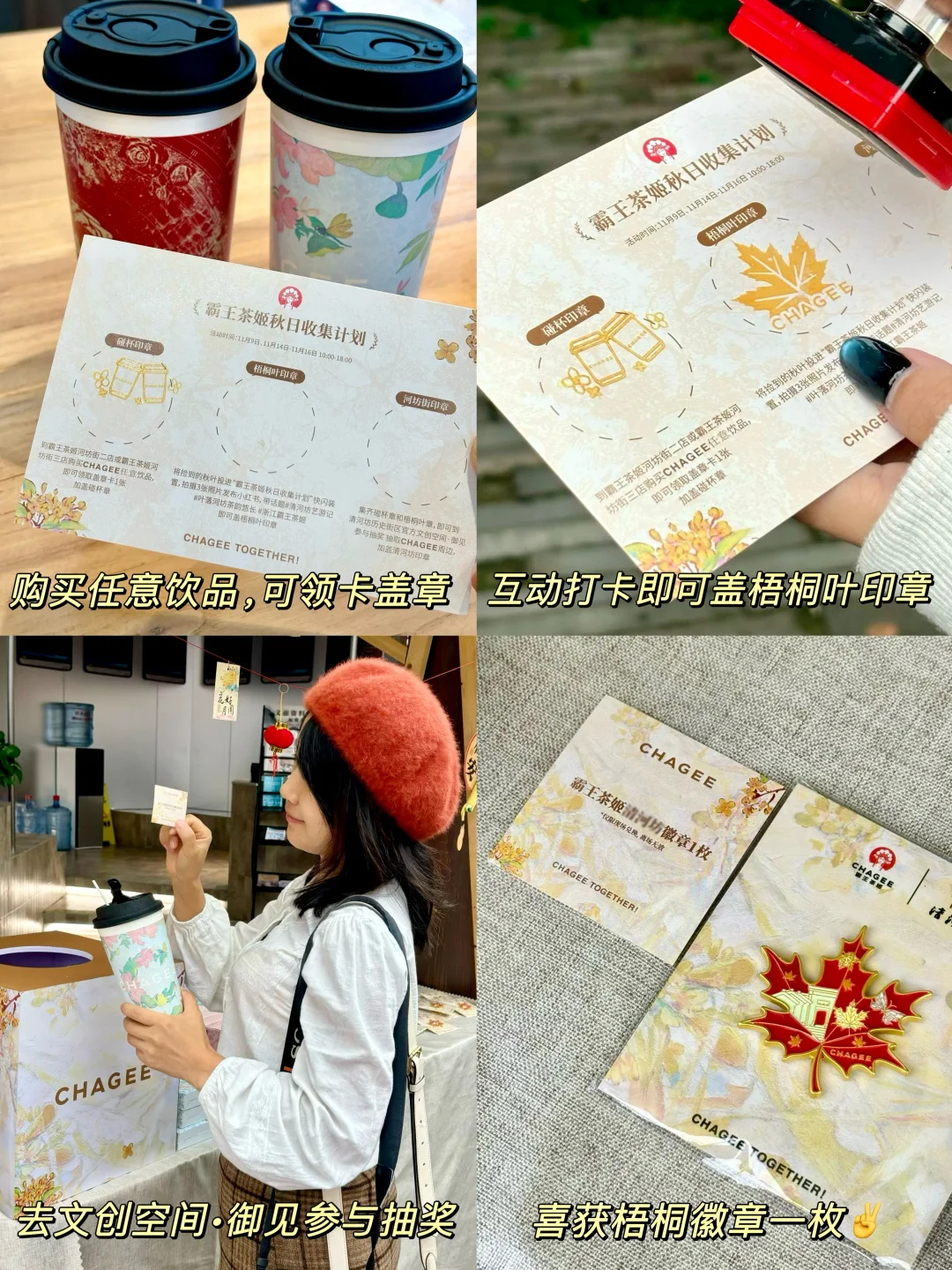 ❶目前在霸王茶姬河坊街二店/三店购买CHAGEE任意饮品,还可领取盖章卡1张,加盖碰杯章(盖章卡数量有限,领完即止)