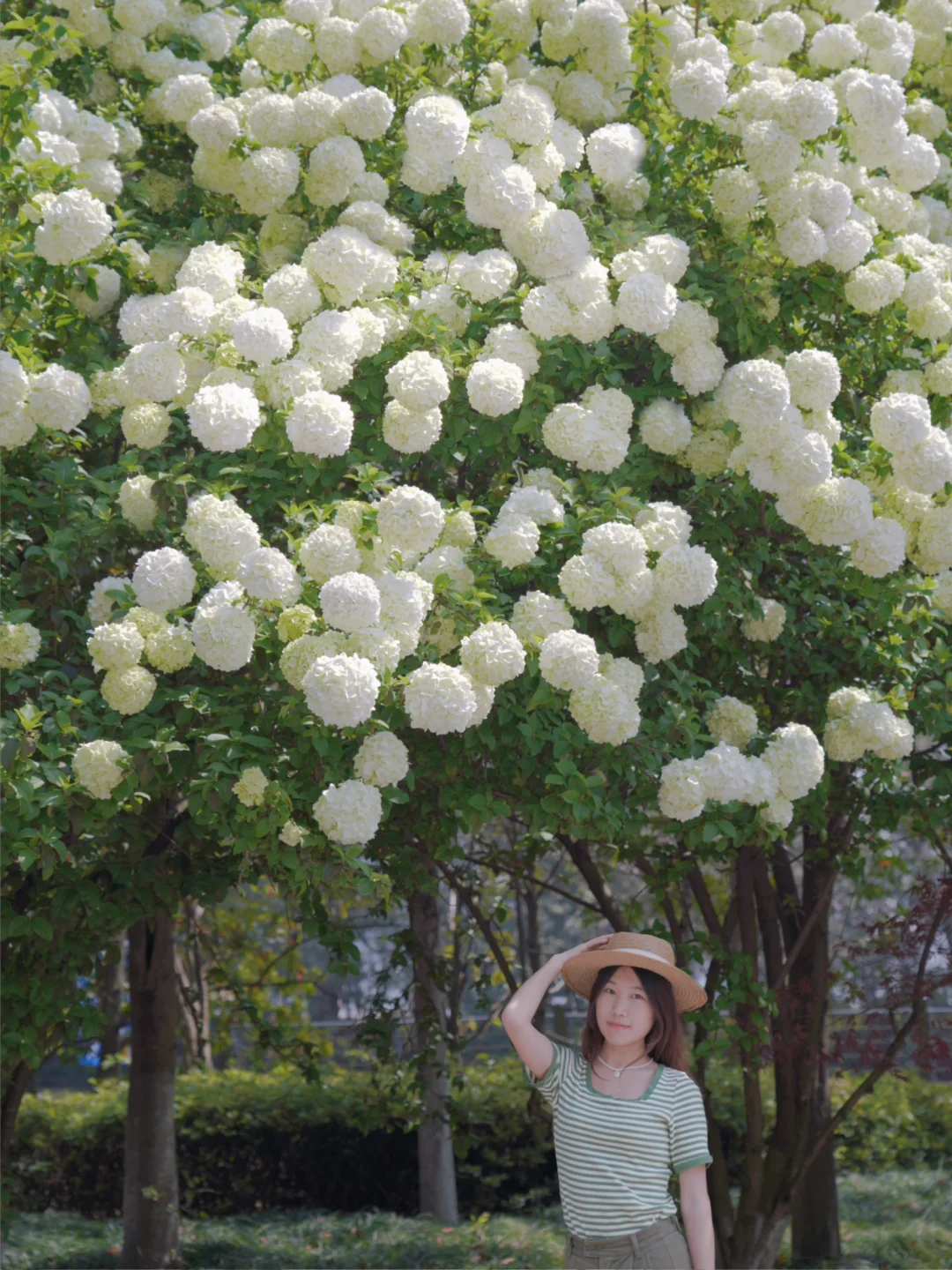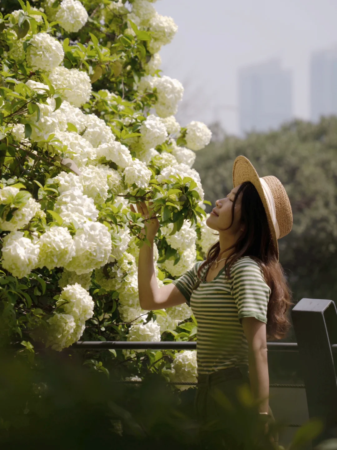 春日已成花海 春日追花攻略 一场大雨后,杭州的木绣球花开了 纯白浪漫的绣球花瀑布太治愈了 树下的长椅和路灯满满的电影氛围感 真的超级适合拍人像呀!可以带把凳子 花期大概有半个月,一定不要不过哦 不用去湘湖,市中心就能实现绣球花自由 虽然没有湘湖的花海那么大片 但胜在花朵又大又白 ,而且人少 🗺️地址:钱江新城CBD公园内 🚇地铁:市民中心N3口/城星路A2口出 开放时间:全天24h(公园开放式) 拍摄日期:去年3·29(现在才开了一部分,不着急的可以再等等)