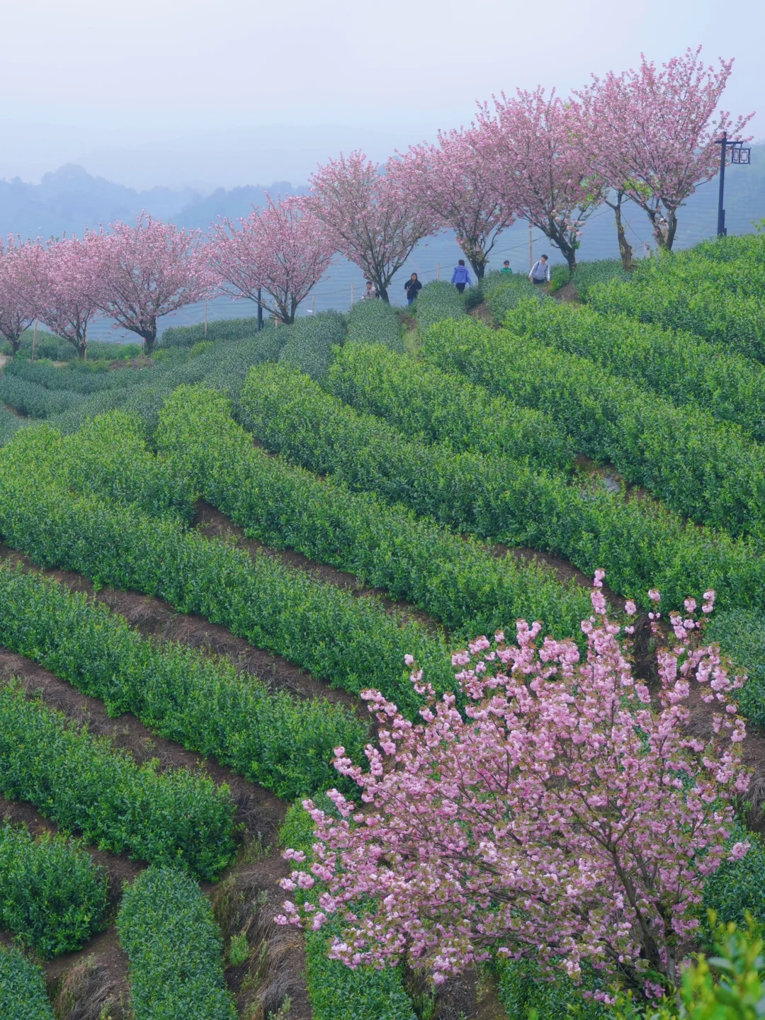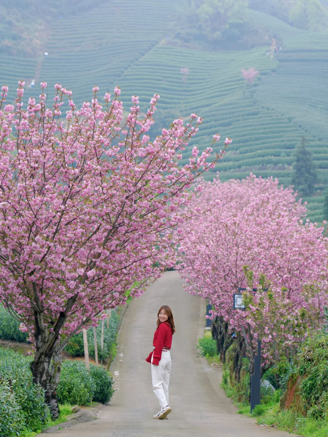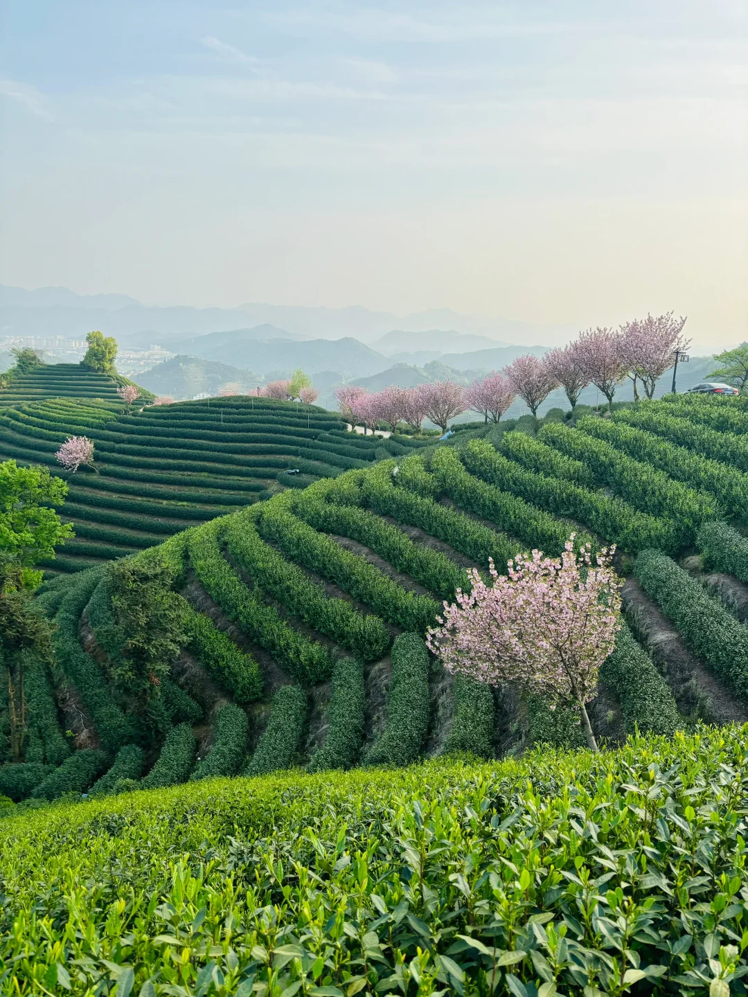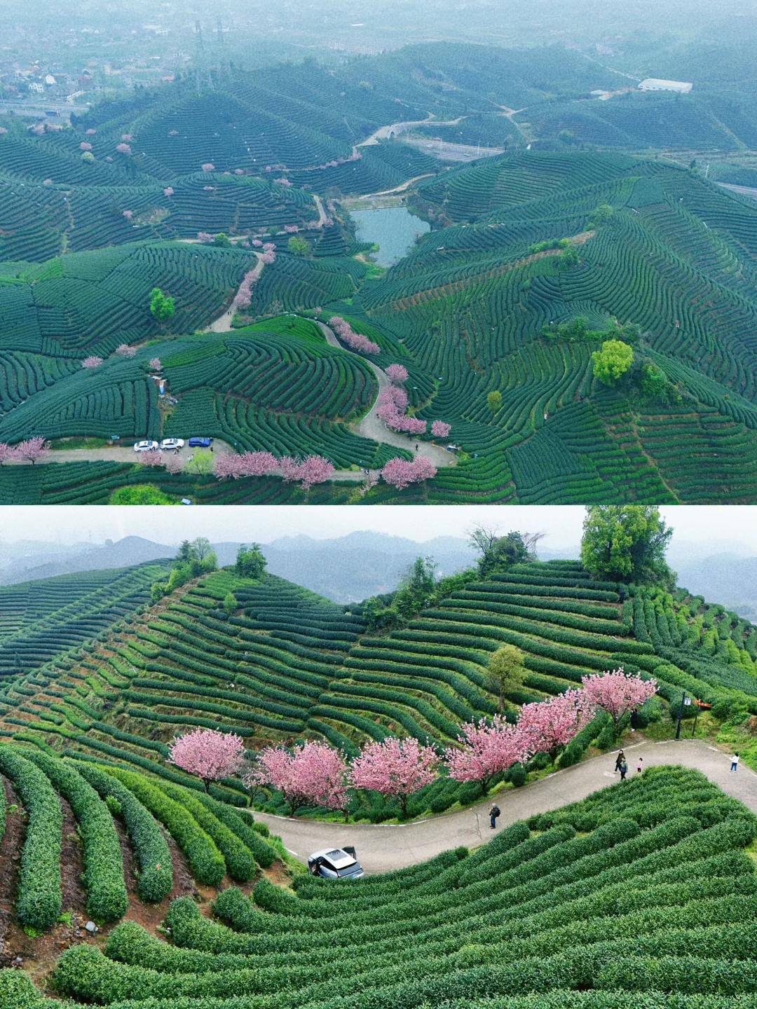 假期去哪玩 杭州自驾1h直达,富阳的拔山茶园美出新高度 山间盛开的近2000株晚樱被春茶包围着 丝毫不输大理无量山的冬樱🌸 每年清明前后都会火出圈🔥 这才是杭州樱花茶田天花板 🍃最佳观景点在半山腰的「观茶亭」 🌸樱花大道在「观茶亭」的下山方向 📍导航:杭州市富阳区拔山村/拔山登山道停车场 也可以直接开车上去(只能单向行驶) ⛰️登山道全长6.5km 沿着登山道徒步上山15分钟 终点在梅花坞水库,建议游玩时间2h 图片拍摄于2024·4·6(建议清明前后去)