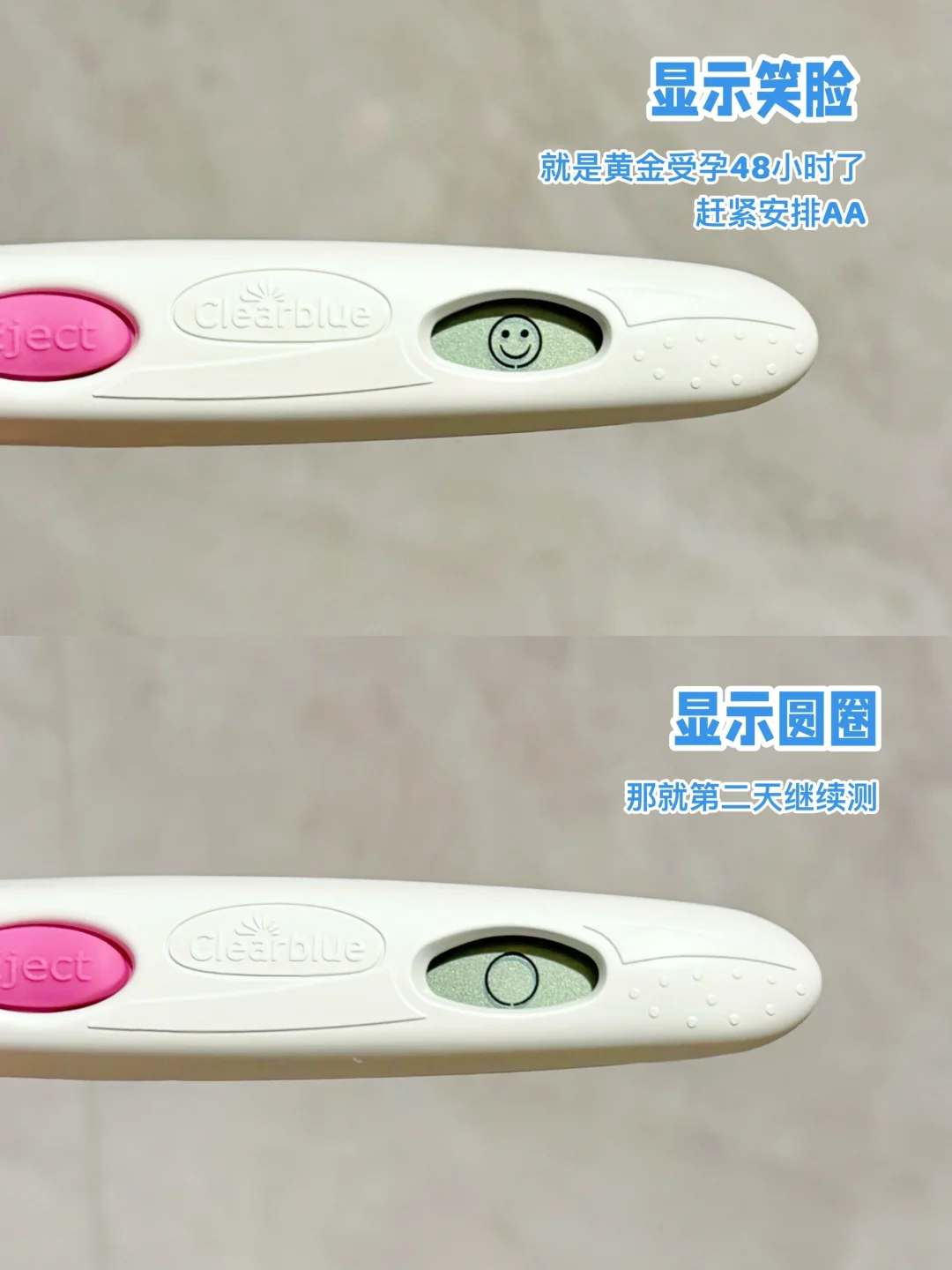 3⃣一天一测,备孕不焦虑!如果出现显示圆圈,那么第二天同一时间继续,直到出现笑脸标志时,意味着48小时内是受孕的黄金时期,抓住机会,受孕几率大幅提升!