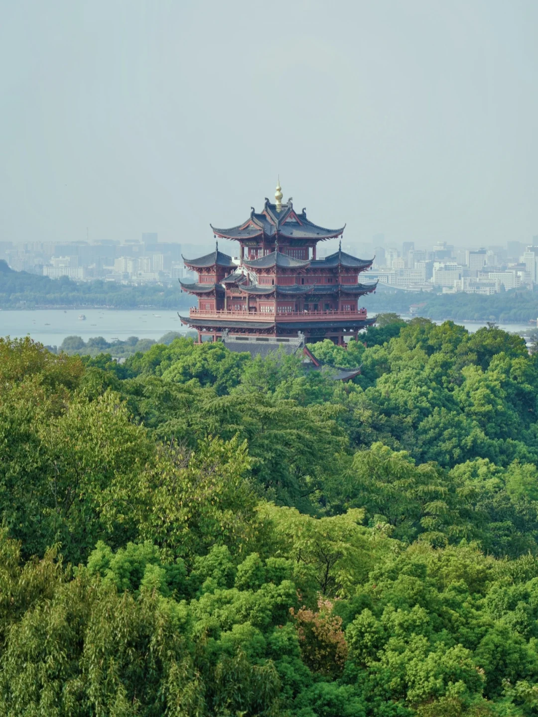 一定要去江湖汇观亭,免费登高远望的宝藏观景台,西湖胜景一览无余,造型和九溪的“九曜阁”很像