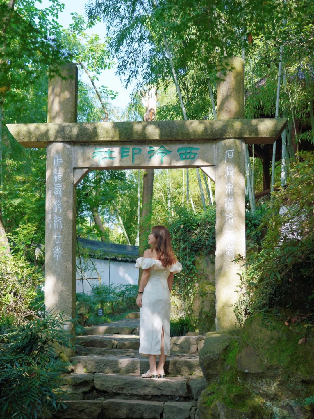 ❽有「西湖天下景」和「绿云径」,长椅拍照绝了