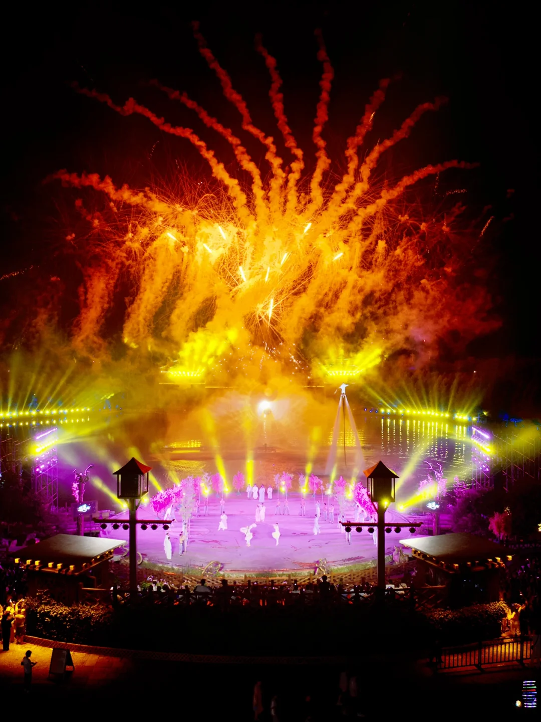 4⃣️逍遥游,太极广场的山水实景秀,(需提前预约,20:15首场烟花秀收费,21:00场无烟花免费),座位先到先得,烟花在场外也能看到~