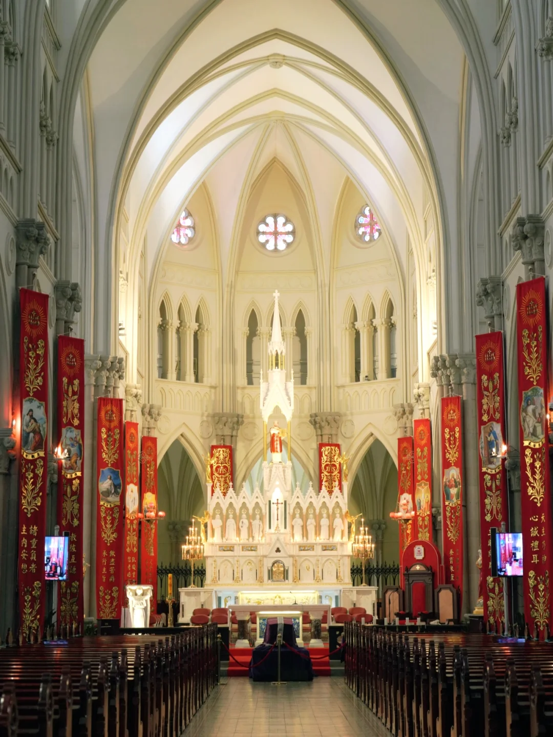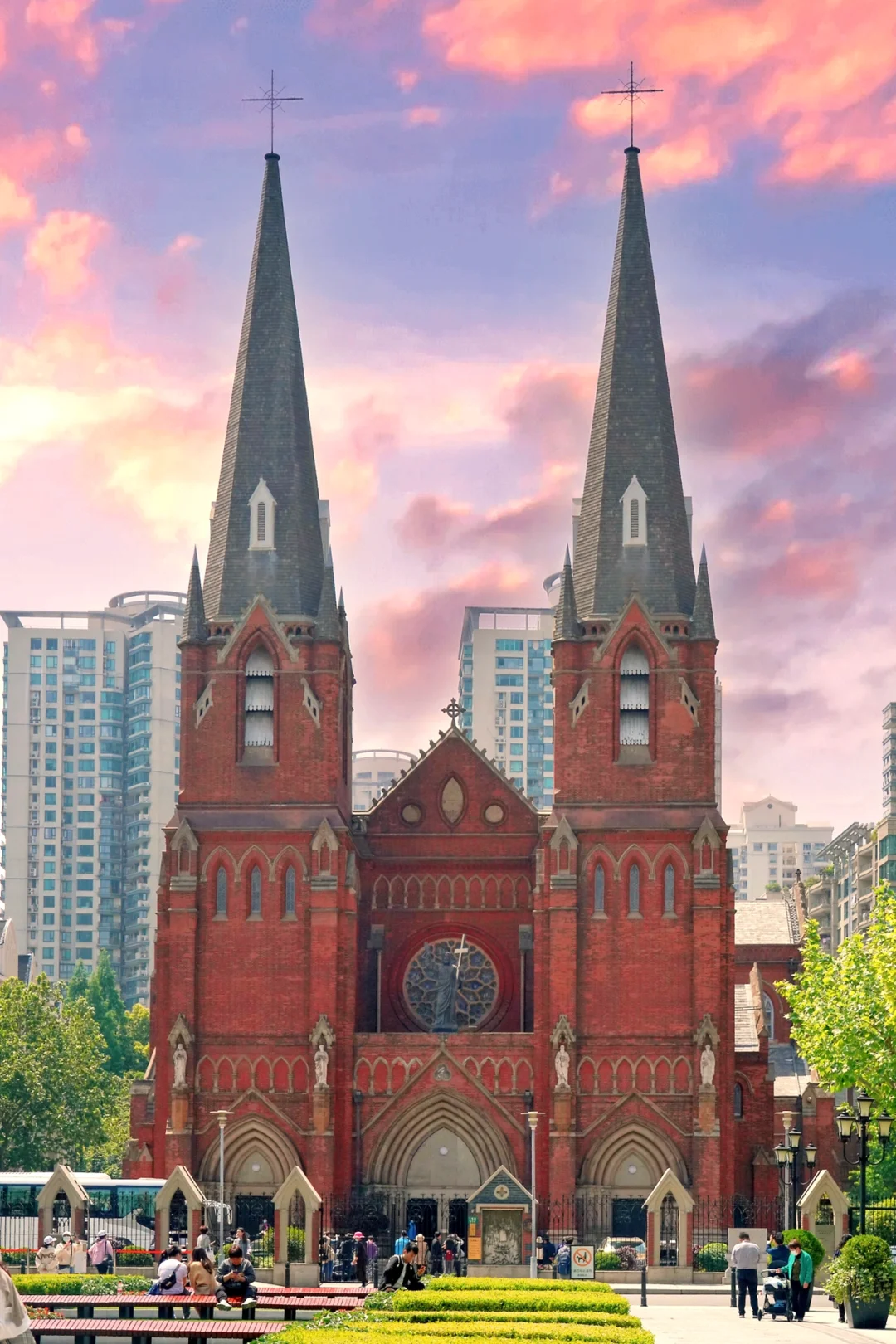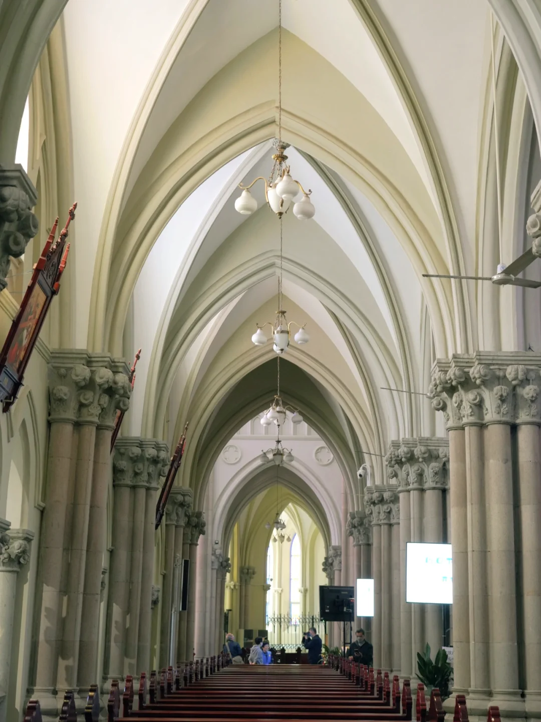 曾经的“远东第一大教堂”,典型的欧洲中世纪哥特式设计风格,整个广场像花园一般,有欧洲散步的feel