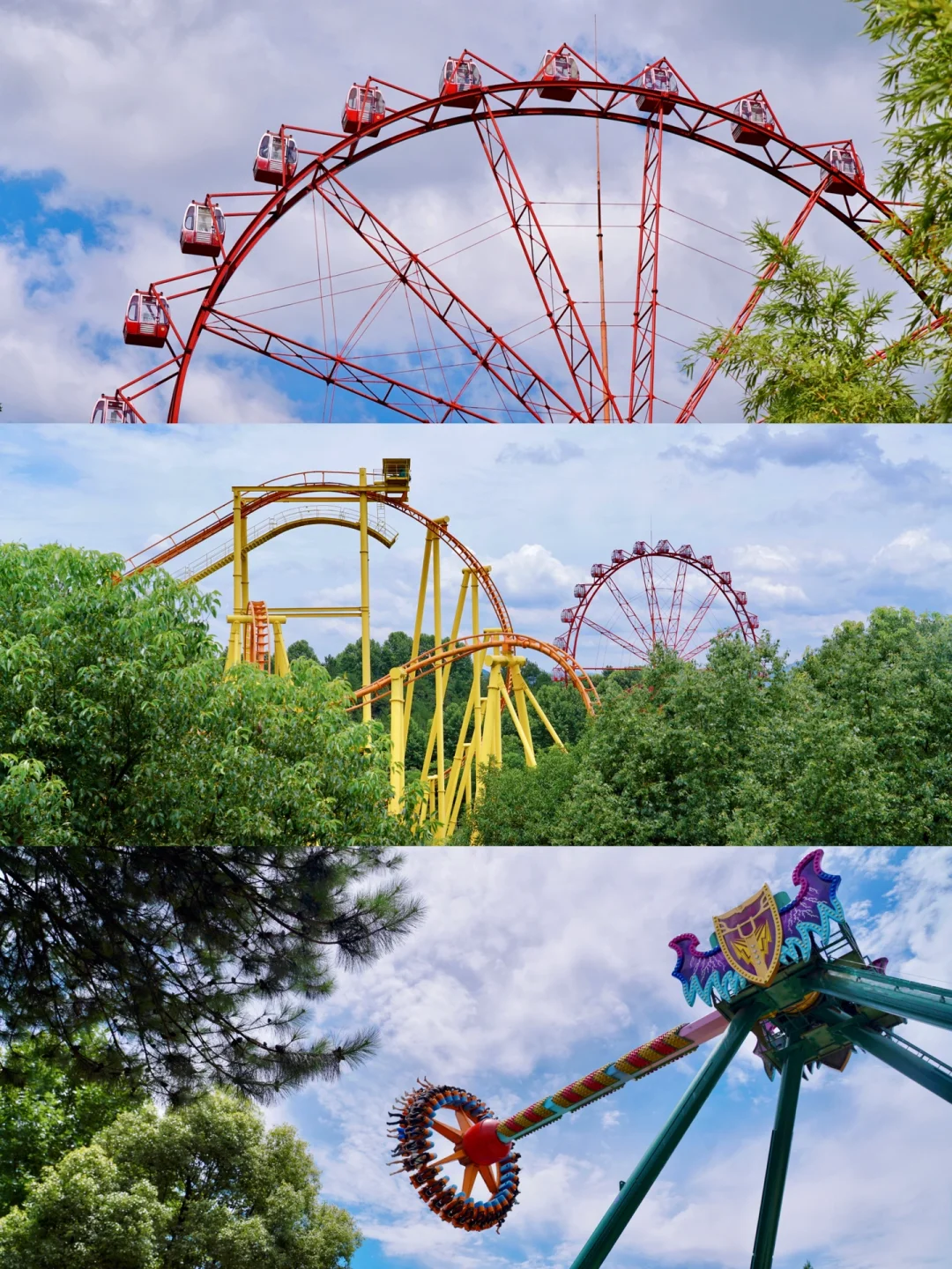 超多好玩刺激的项目:激流勇进、大摆锤、黄金过山车🎢、玻璃栈道、溜索、摩天轮🎡、豪华转马等