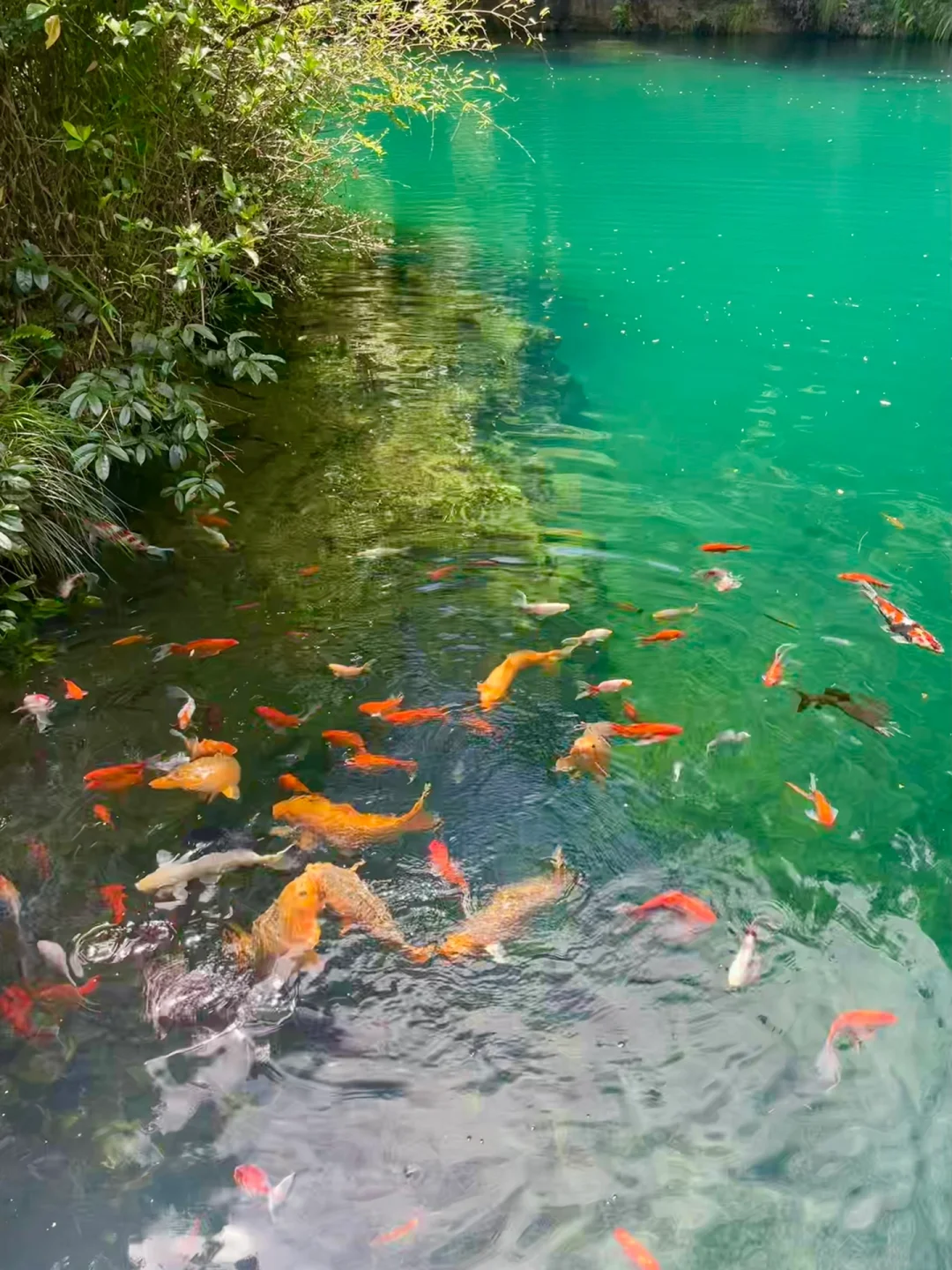 ❷看彩鱼🐟游来游去、飞瀑生彩虹🌈