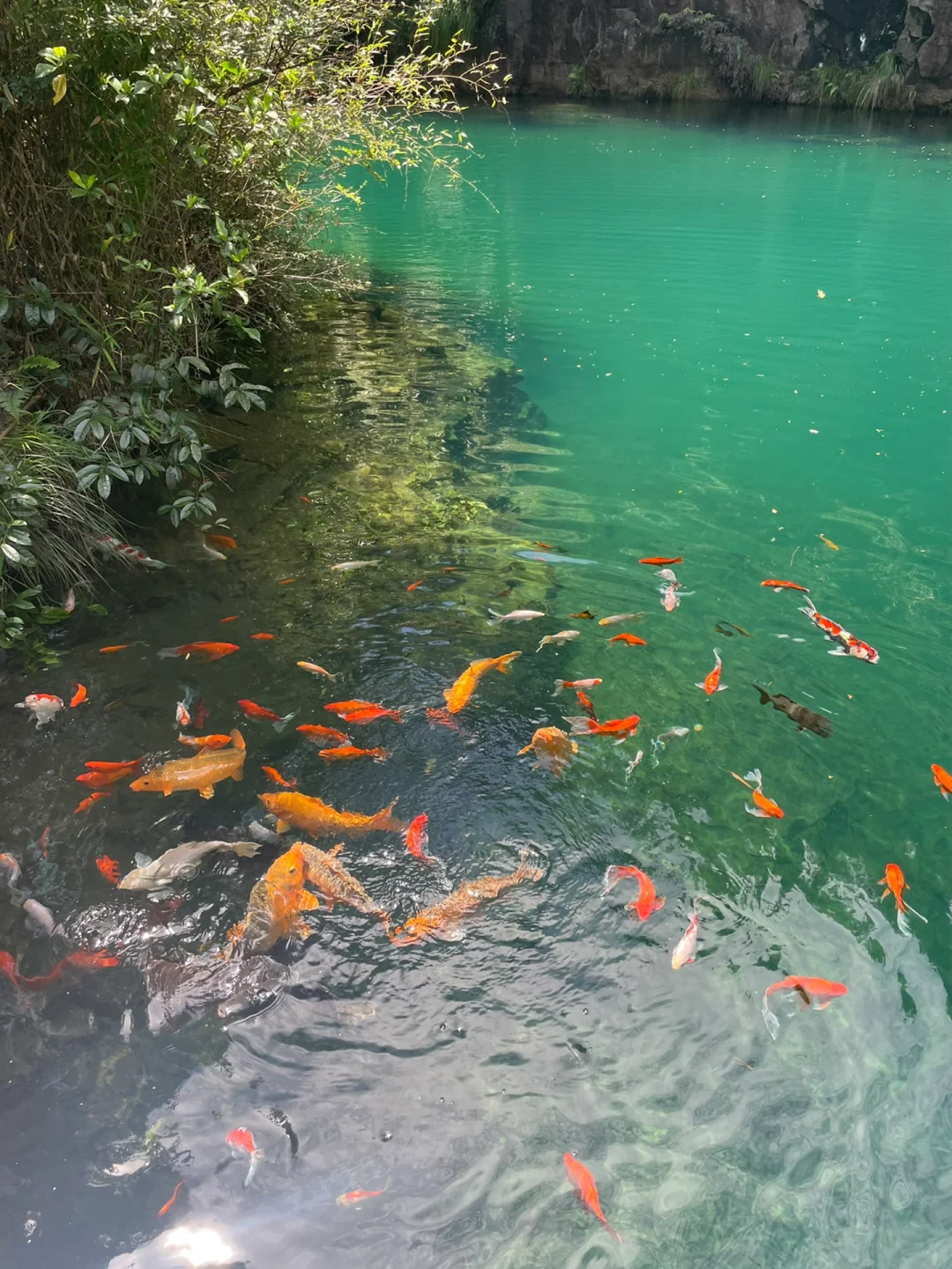 ❷看彩鱼🐟游来游去、飞瀑生彩虹🌈